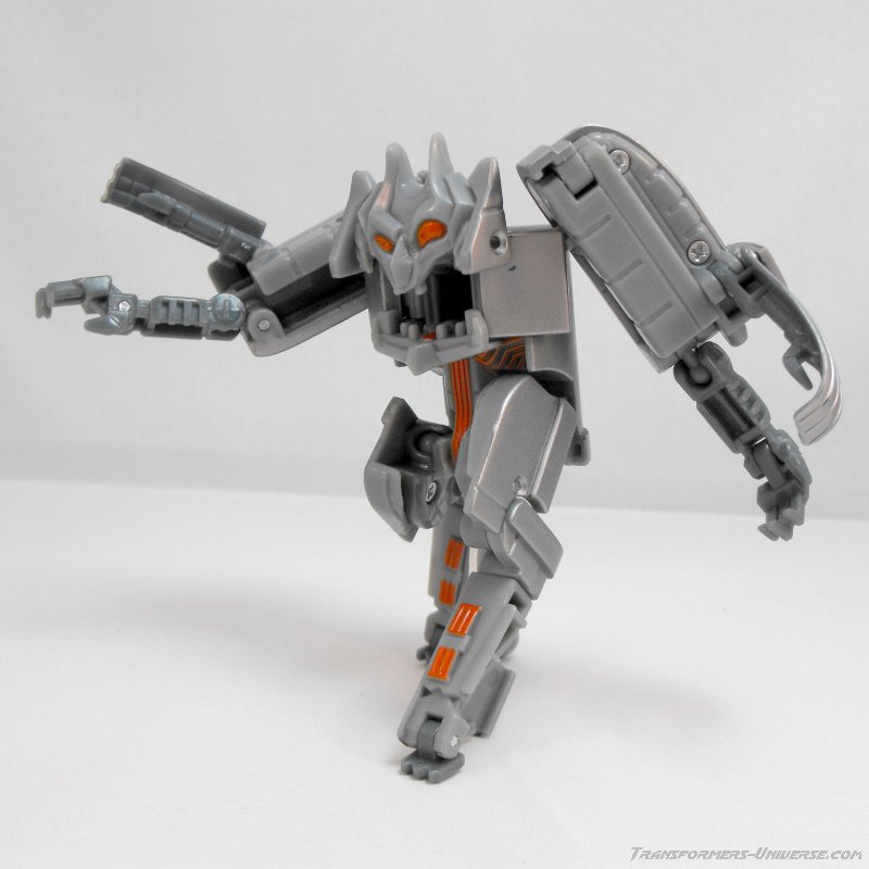 Alternate Mode: I guess you could call Ejector the only member of the Real Gear subline in ROTF, if that line was still around. He transforms into a household item, in his case a toaster. Which basically means he folds up into a rectangular box with some molding on top to suggest openings for bread slices and a power cord dangling off at one end. The detailing on the toaster isn’t exactly brilliant, but it’s recognizable as what it’s supposed to be. Not much you can do here (I’m waiting for the Device Label line to bring us a working toaster-bot), but it’s kind of fun to see a Transformer turning into a toaster.