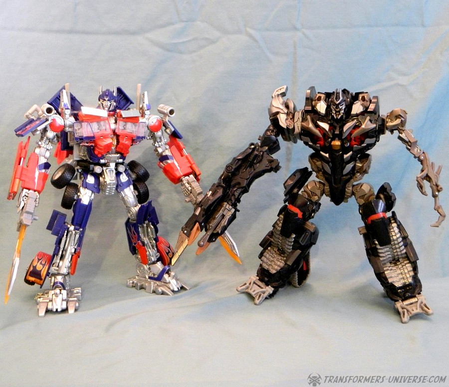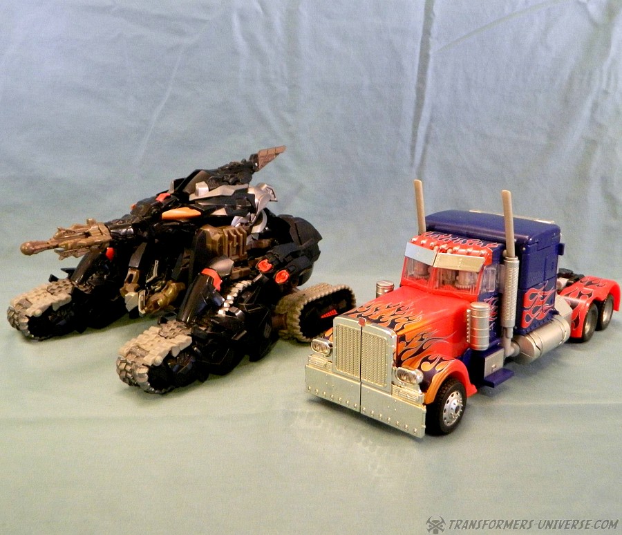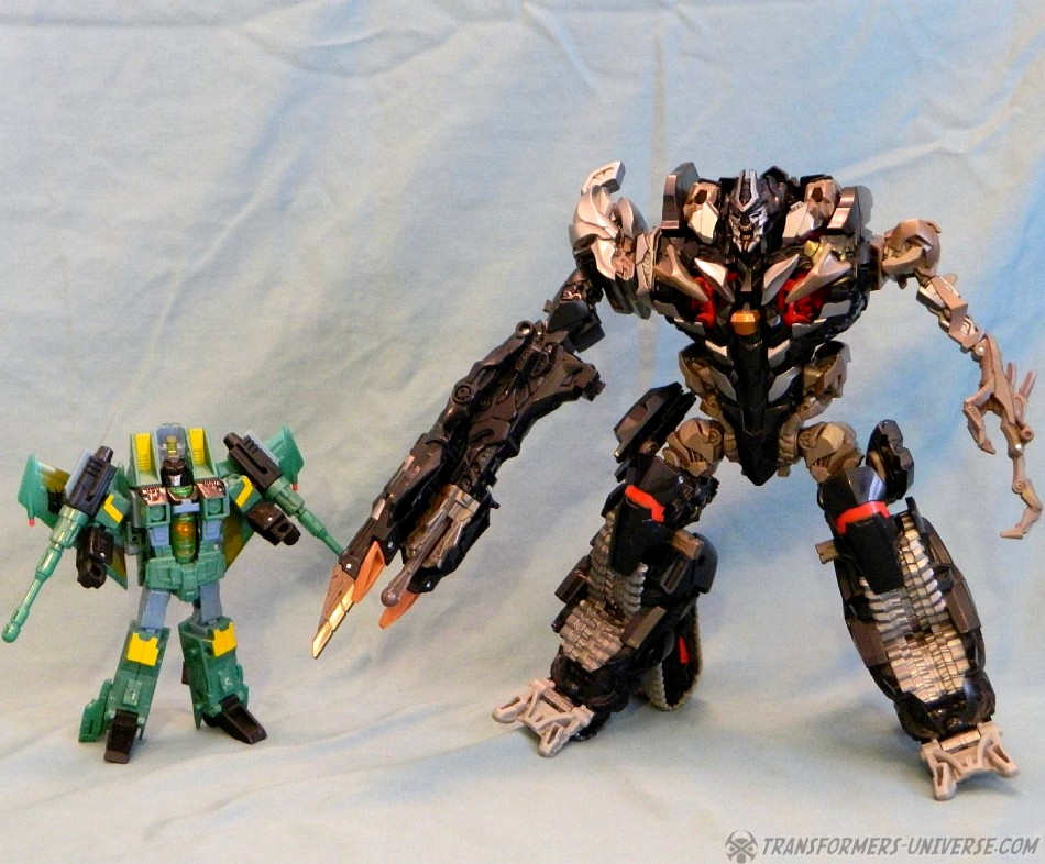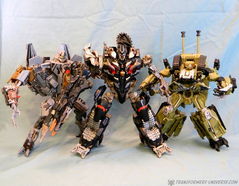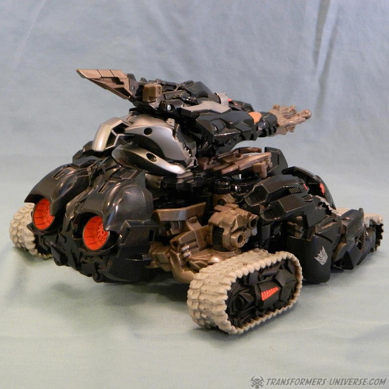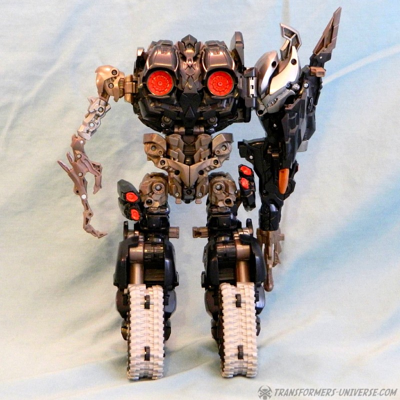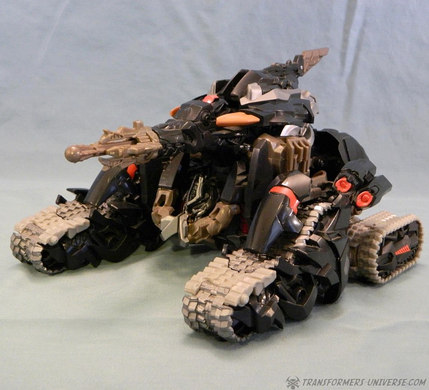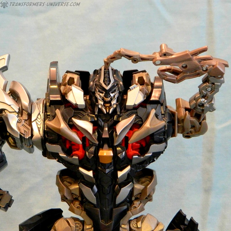 Remarks: Shadow Command Megatron is a repaint of the regular Leader-Class Megatron from Revenge of the Fallen, which I have previously reviewed. Not much has changed except the coloring, now being largely black. According to TFwiki, the voice chip has been changed as well. Instead of saying "I am Megatron!", it says "There is no command but mine!". The blast sound effect has also been changed to a laser sound, and a G1-esque sound effect plays when rotating Megatron's legs during transformation. This is just the US version, of course. Since lines and sound effects tend to be changed for international releases, there might well be other versions out there.