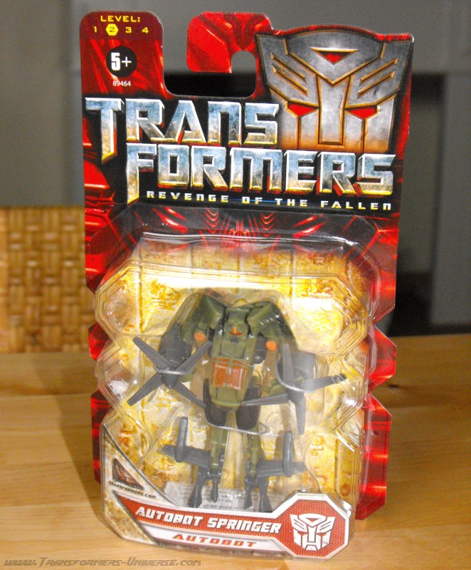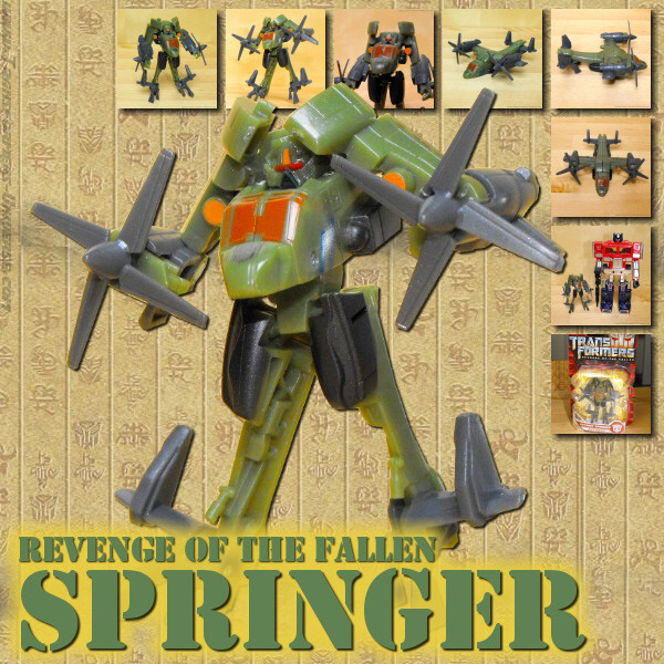 Remarks: Springer was a bit of a surprise in that he got two toys in the initial waves of the ROTF toyline, this one here and a Robot Hero, despite not appearing in the ROTF movie. Why did this happen? Simple, because he was supposed to be in the movie. Plans changed, though, but the toys were already in production. So despite appearing only in the British ROTF comics from Titan, he has more toys than on-screen characters like Scalpel.