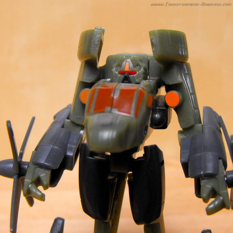 Robot Mode: Given his strong resemblance to Incinerator, one has to wonder whether the mold for Springer might not have originally been intended to be a Legends-class version of that Decepticon. Whatever the case, though, Springer does have one advantage over the much larger Voyager-class figure he so resembles: hands. While he still has the twin rotors of his alternate mode on his arms, they flip over to unveil hands.