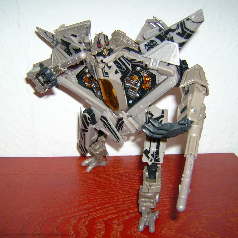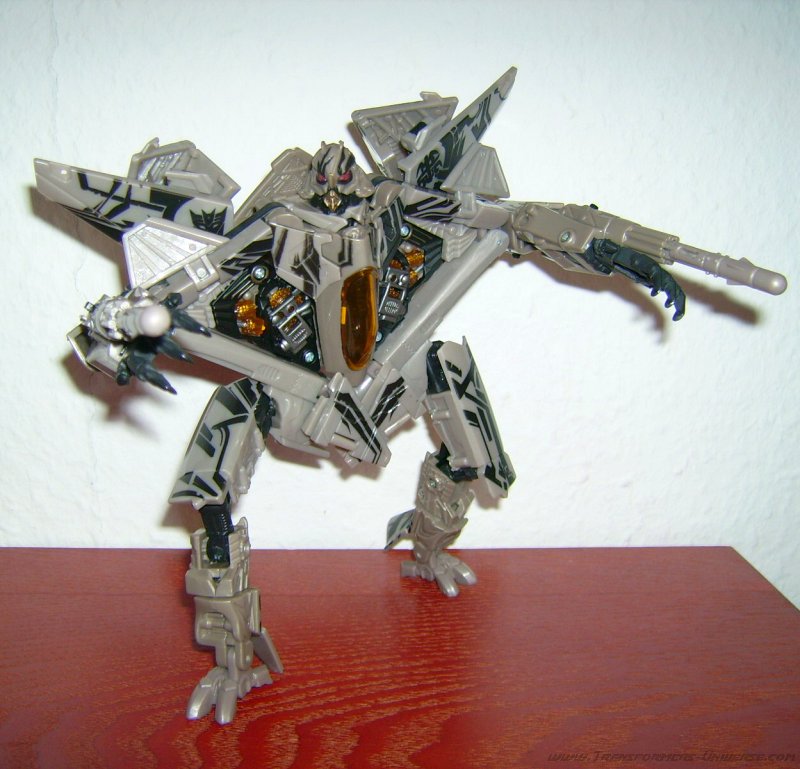 The movie character was also done quite well. The conflict between his own lust for power and hatred on one side, and the fear of Megatron on the other was done very convincing and his smart-ass pieces of advice are still in my ear. His character was finally approaching that of classic Starscreams. The figure itself is, of course, in no way, shape, or form a homage to previous Transformer history. People who want a classic Starscream will be disappointed here. But people wanting a cool action figure and a faithful version of the new Starscream will get their money’s worth.