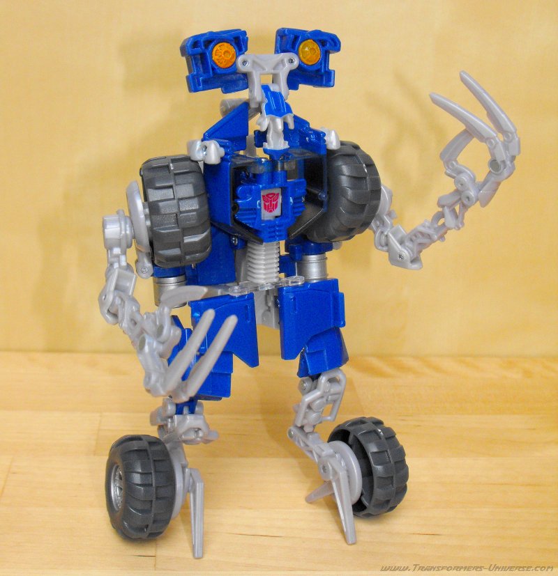 Robot Mode: Wheelie has the distinction of being among the tallest of the Deluxe figures ROTF has to offer, while having one of the smallest alternate modes. And being the smallest characters in the movie itself, of course (not counting Insecticons). Wheelie is a very broad robot, but from certain angles he looks like a loose collection of parts. He isn't, by the way. Everything about him holds together pretty well, it's just the way he looks.