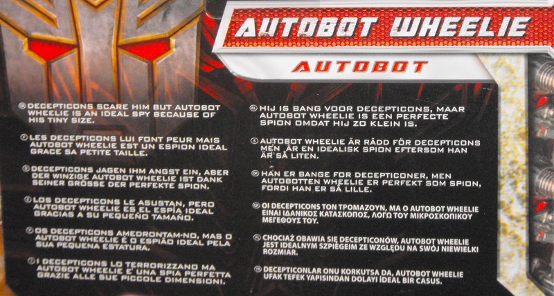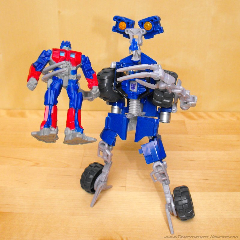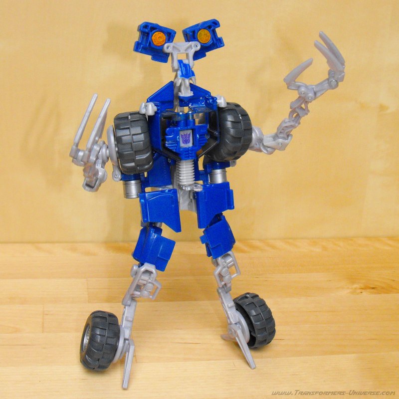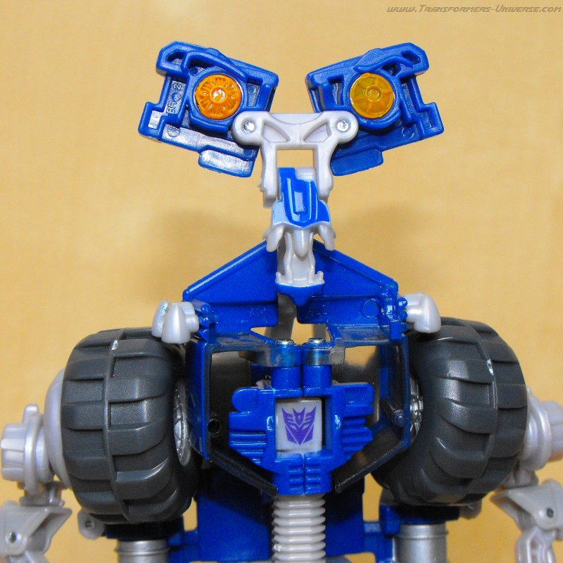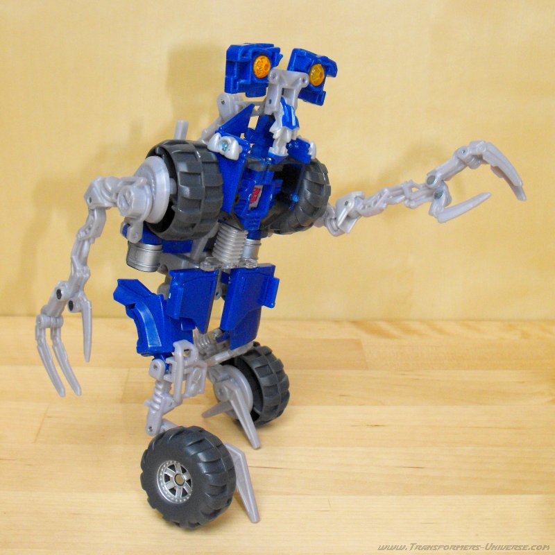 Remarks: Thinking about it, Wheelie was possibly the Transformer who had the most lines in the Revenge of the Fallen movie. But despite that, the scene most fans will remember him for is the one where he humps Megan Fox's leg. Leaving aside the question why a mechanical life form would want to hump an organic woman's leg, Wheelie pretty much disappeared from the screen after that infamous scene when the action shifted to Egypt, never to be seen again. Did he survive? Who knows, Michael Bay certainly didn't care to show us.