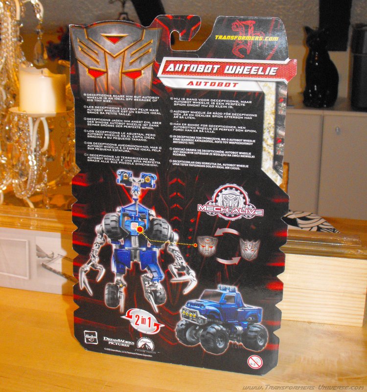 Autobot Wheelie never really wanted to be a Decepticon. It's just that, when people start yelling at him, he tends to do whatever they say. He's easily startled, and simple to scare. His tiny size makes him an ideal spy, and even though he doesn't like or agree with the Decepticons, they scare him so much he doesn't know what to do except obey.