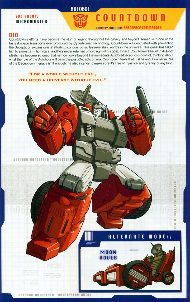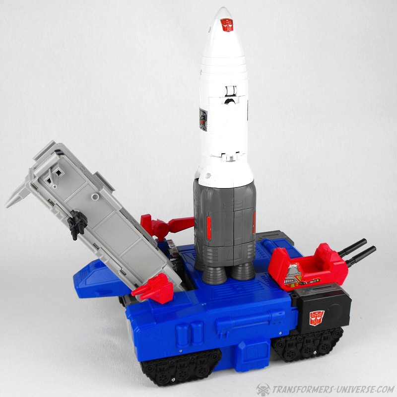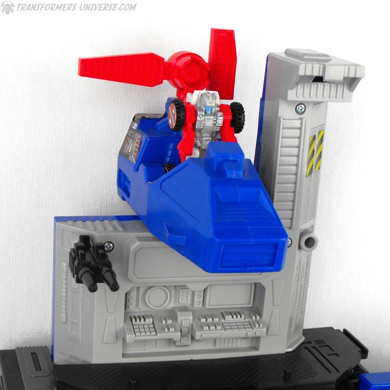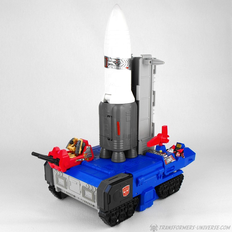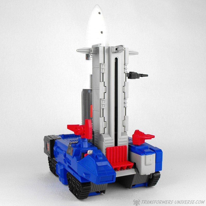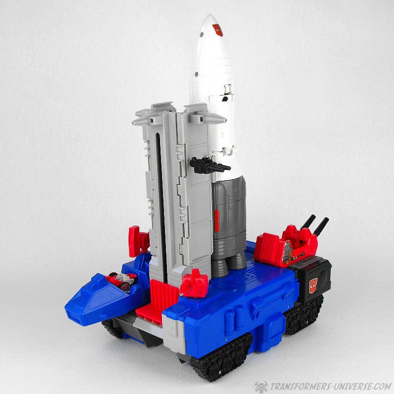 An intergalactic hero and space explorer. A legend to beings throughout the universe and an inspiration to his fellow Autobots. Fought 1000 battles and circled almost a million stars, defending the rights of the innocent. Transforms to lunar rover with com-link disk that enables him to control the entire defense base from up to 30,000,000 miles away. His interstellar rocket ship converts to mobile launch pad armed with two energy-zapping de-kineto cannons that freeze objects in mid-motion. Ship is also designed to use planetary orbits and gravitational pulls to "slingshot" across entire galaxies in seconds. Command base equipped with laser blasters, high-tech repair bay, interstellar communications center, space-tracking radar, and high-speed launch pad.