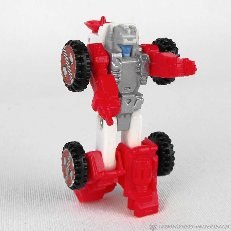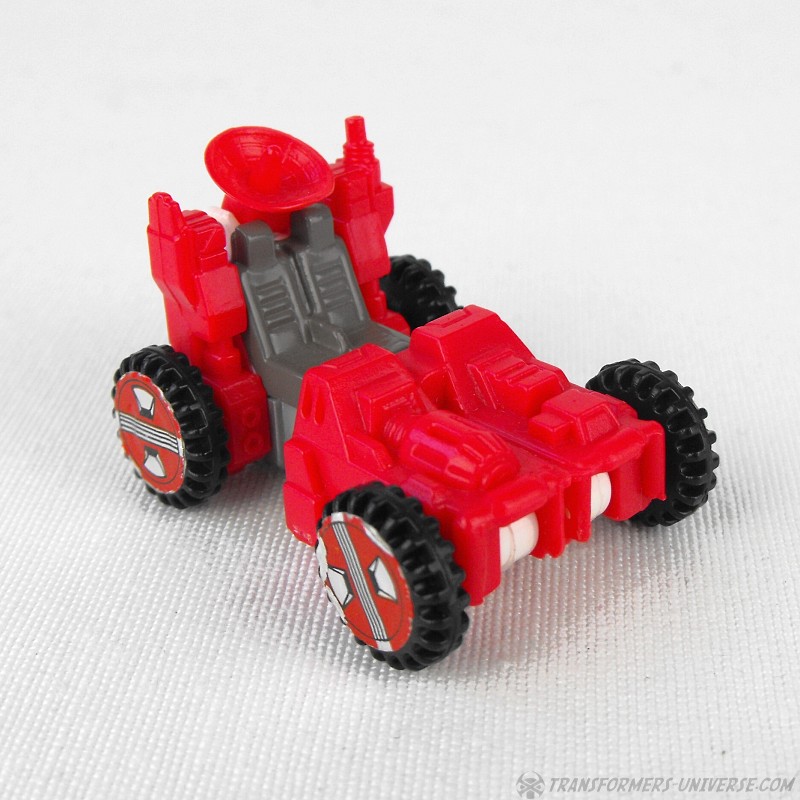 Alternate Mode: Countdown transforms into a moon buggy with a big (relatively speaking) antenna dish on top. The car looks good for its size with sculpted seats, but that’s pretty much it. A typical Micromaster vehicle mode. One of the nicer ones, yes, but still not that spectacular.