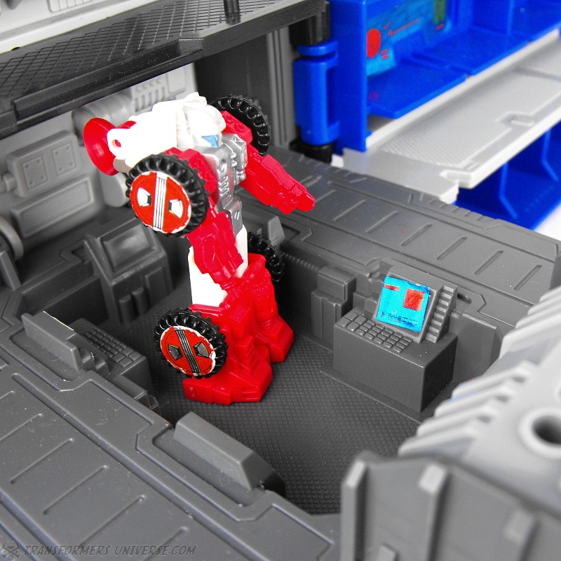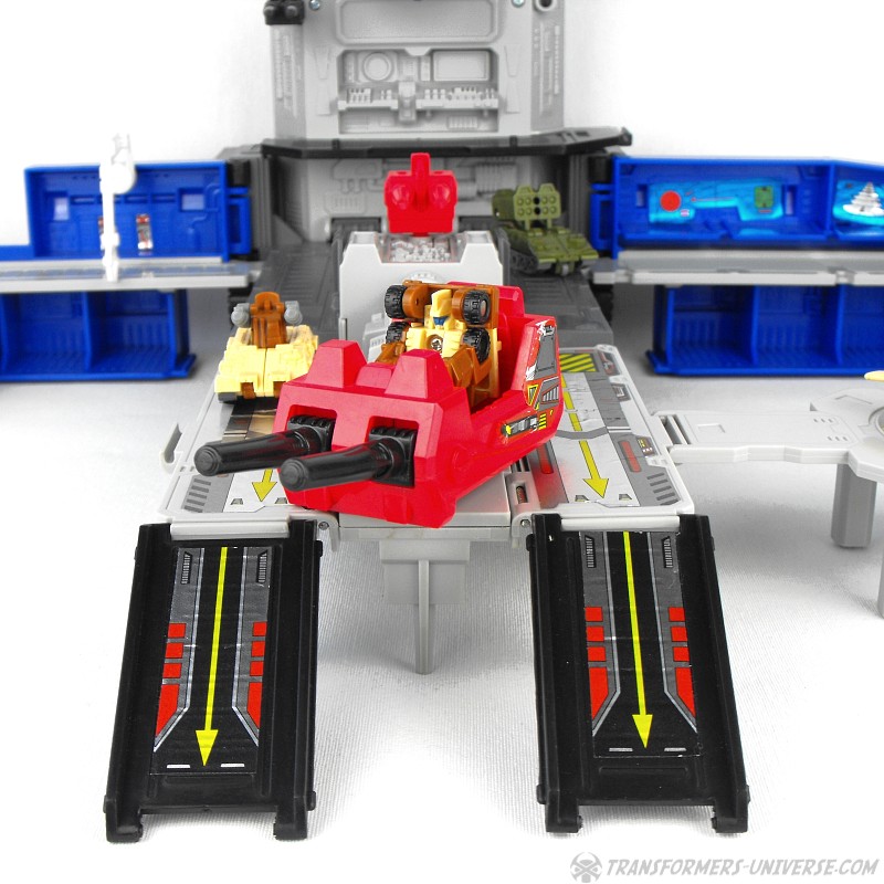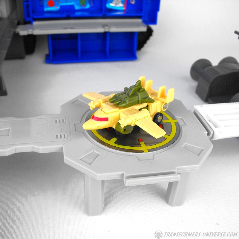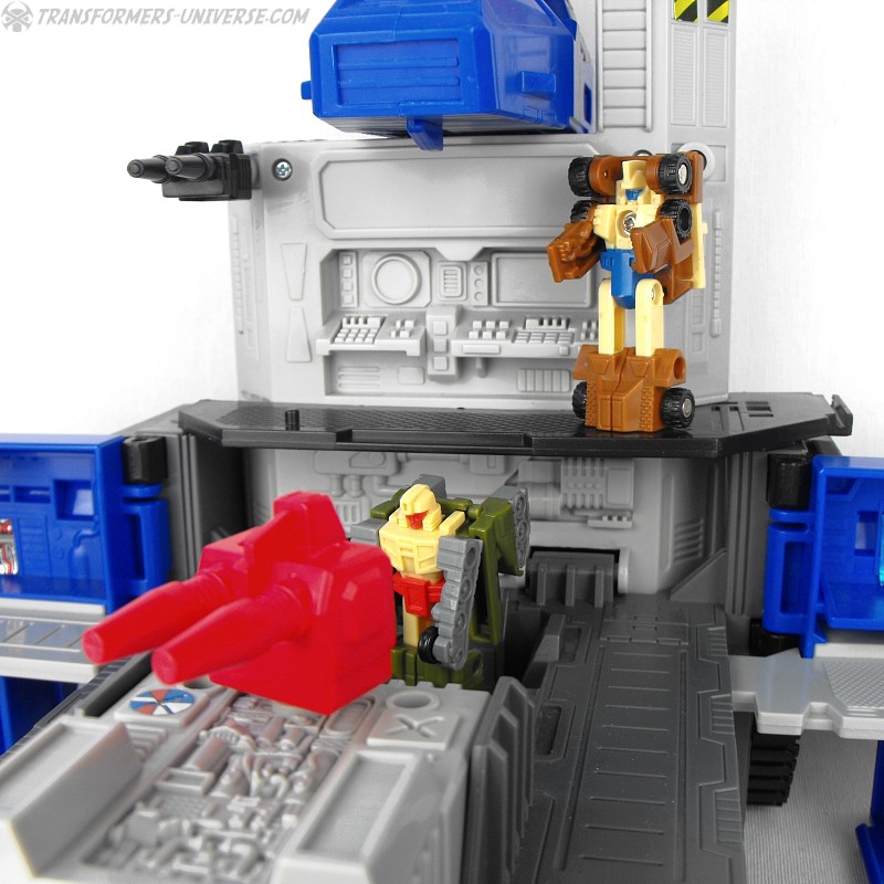 There are lots of places here to attach weapons and position your Micromaster (or similar-sized) robots to set up a truly epic-looking play set. Sadly mine is missing quite a few stickers (computer screens and such), but I intend to remedy that soon with new ones from Reprolabels. Overall I can’t really write much more here, as the base doesn’t have much in the way of gimmicks or such. It just looks cool and serves as a stage for your figures. Just look at the pictures, I believe they tell the tale. Overall I really like this mode, both for itself and for its compatibility, and I hope to find the time soon to set up a really big G1-style Autobot City playset.