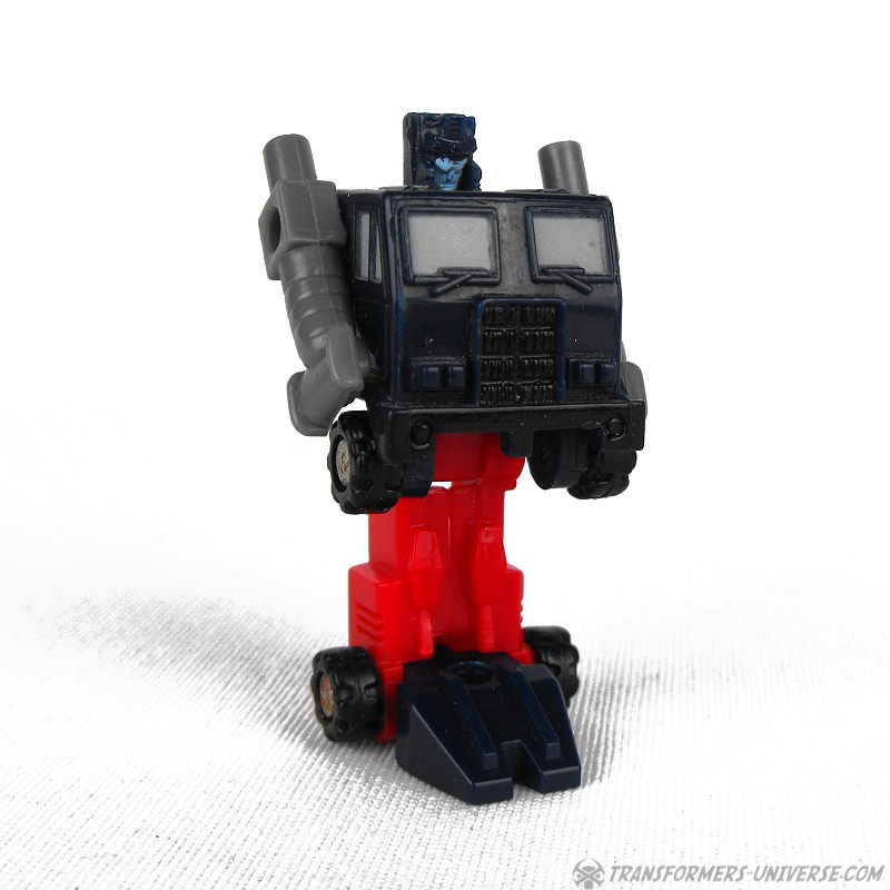 Robot Mode: Overload in robot mode is somewhat reminiscient of Optimus Prime, but only somewhat. The boxy torse is the truck cap, the arms are smokestacks, and the rear of the truck becomes the legs. Detailing, posability, variety of colour, forget about it! As a Micromaster he doesn't have any of that.