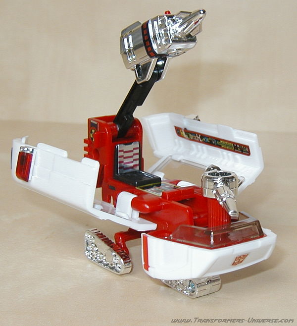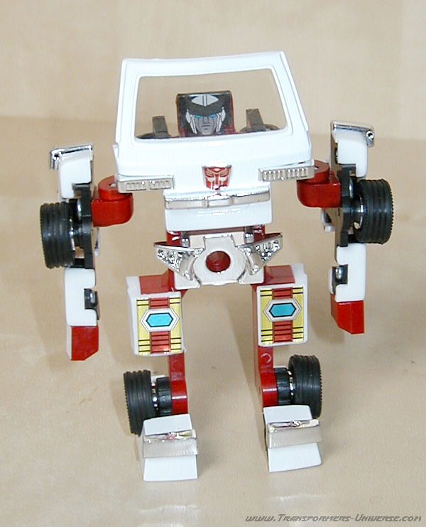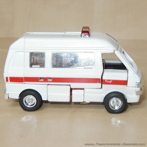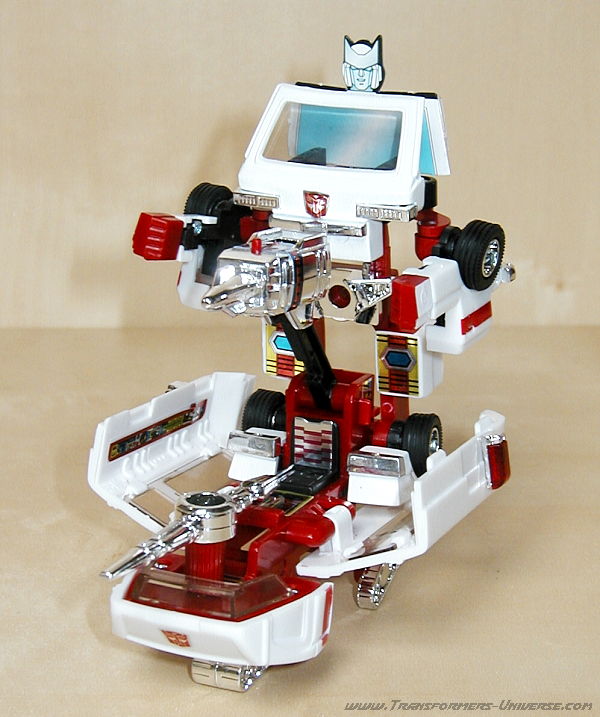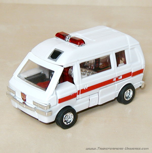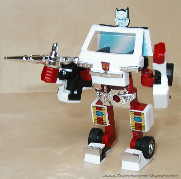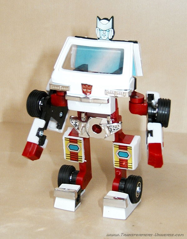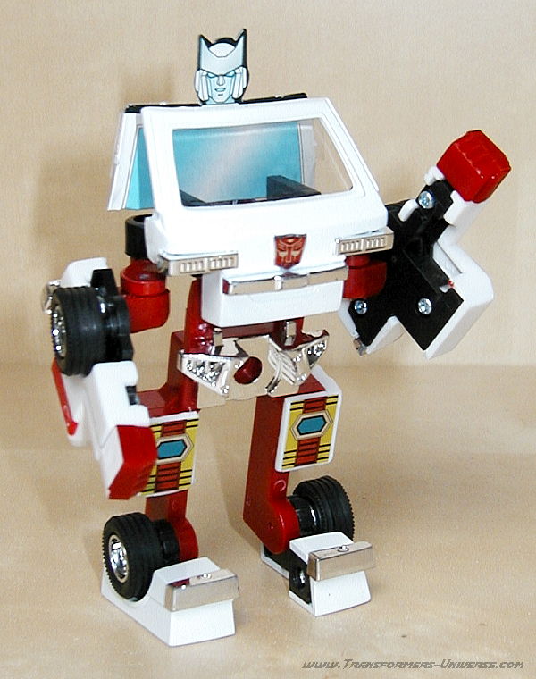 Robot Mode: Ratchet probably takes the award for G1 Autobot that looks least like his cartoon counterpart. The robot doesn't have a head. Hailing from the Diaclone days, it is little more than the cab of the ambulance vehicle with arms and legs. There is a seat behind the windshield where the Diaclone driver could sit.
