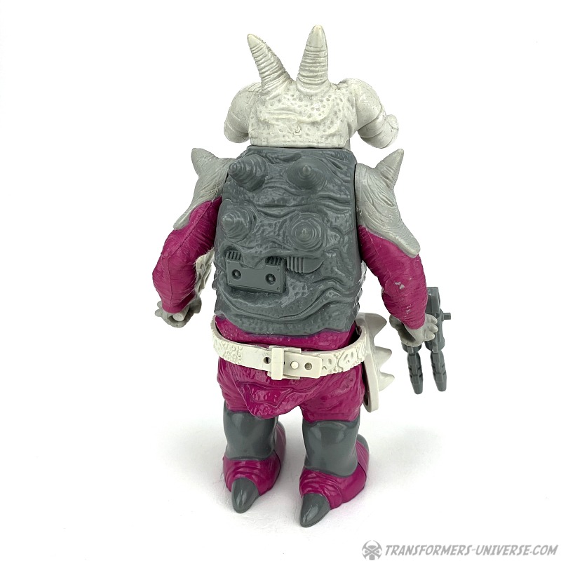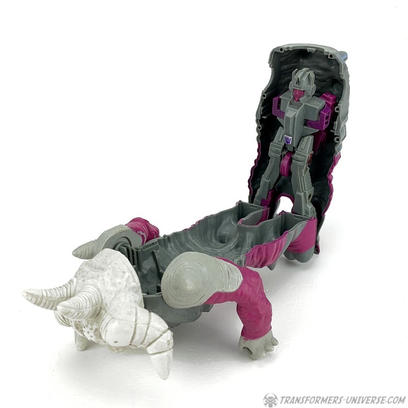A brutal, uncontrollable engine of destruction! Doesn't stop attacking until everything is destroyed. Never retreats from danger. Usually communicates in a series of snorts and snarls. In creature shell, wields a double slagmaker laser and metal-rending vibro sword. Without shell, transforms into a shrapnel-blasting assault tank.
