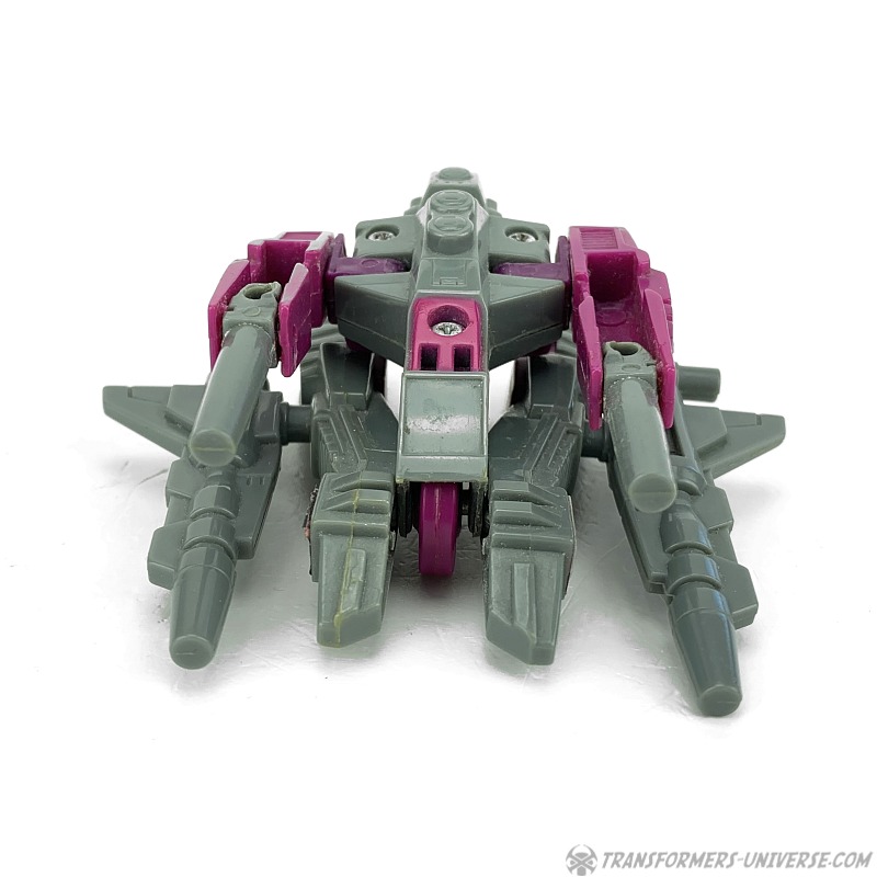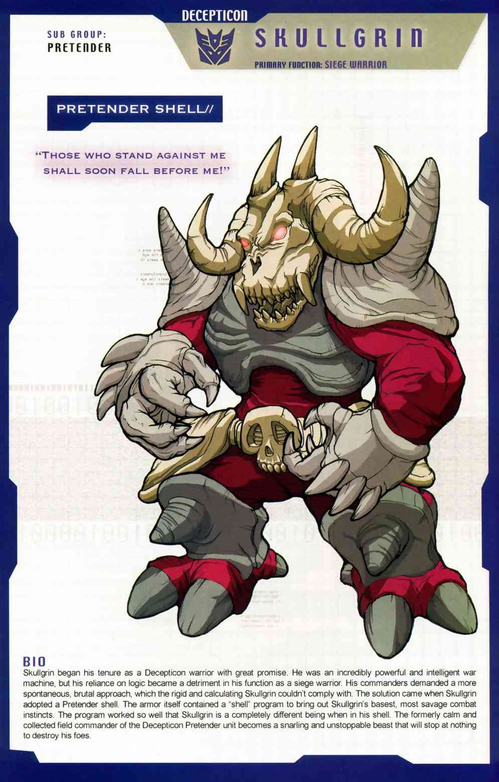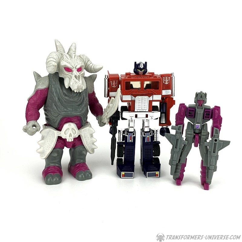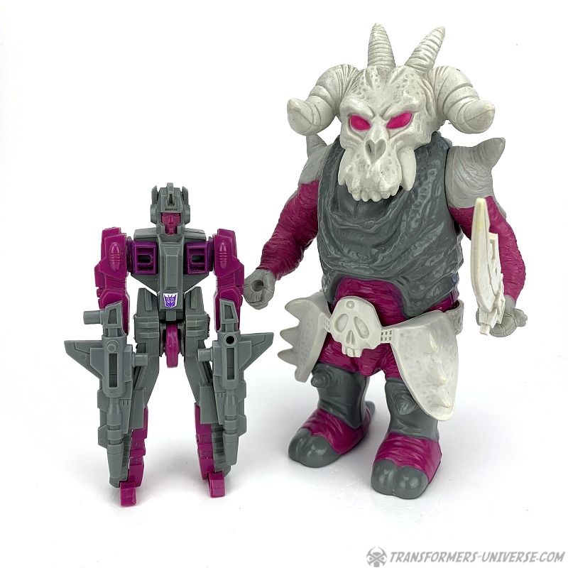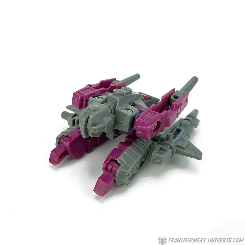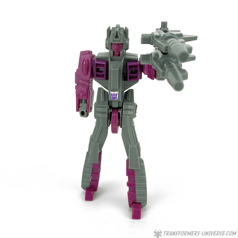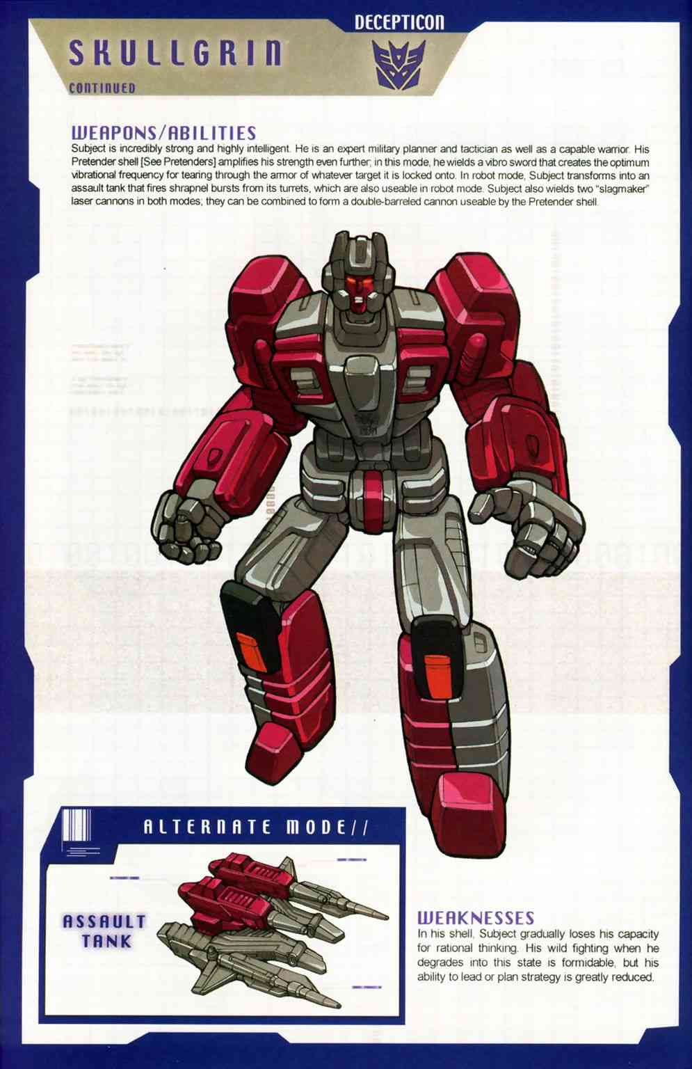 Remarks: Skullgrin scored no appearances in the G1 cartoon, but played a prominent role in the Japanese Masterforce series and had a brief appearance in the comics as the Decepticon who went to Hollywood. That said, the figure is nothing special and the Pretender gimmick doesn't help. While the alternate mode as a futuristic assault tank is a bit above the usual Pretender alt modes, it doesn't lift this toy up much. Call it slightly below average.