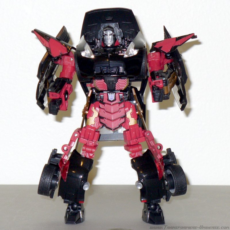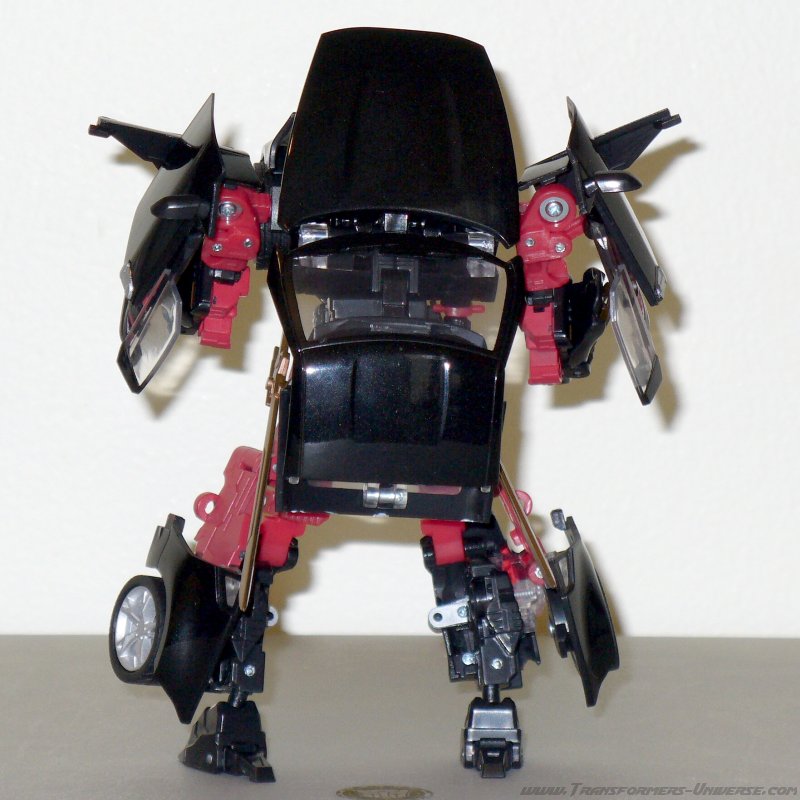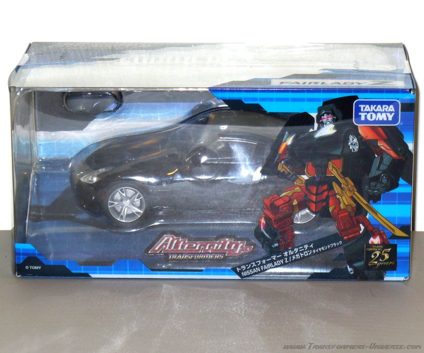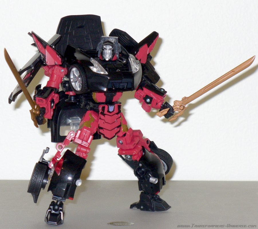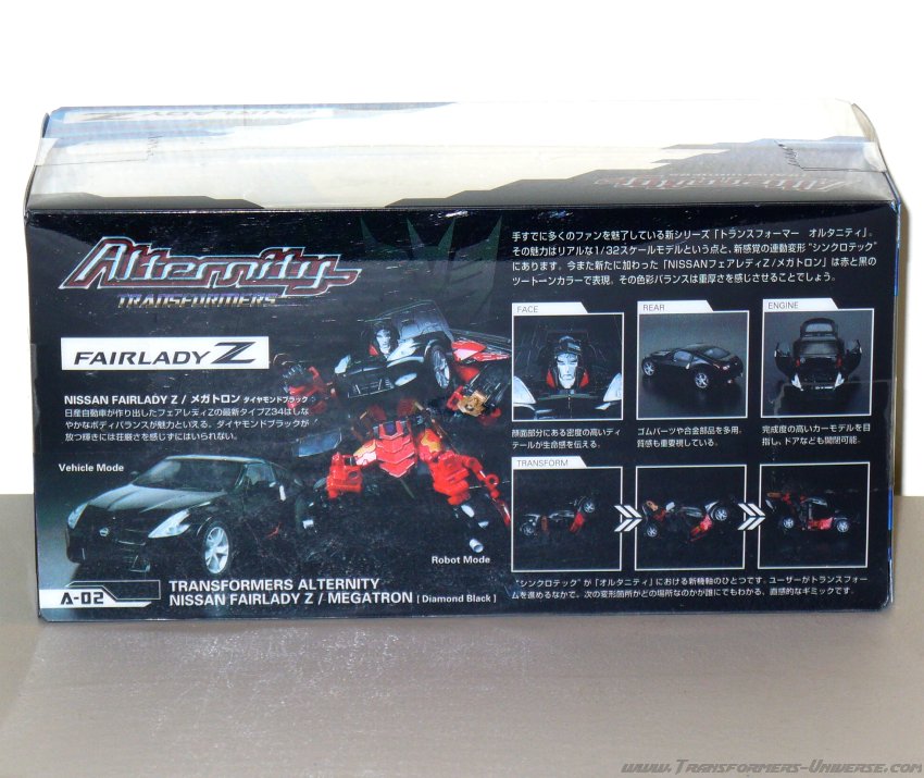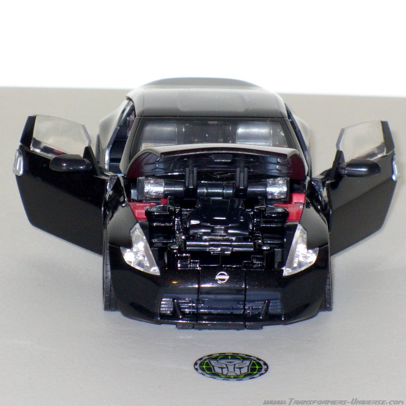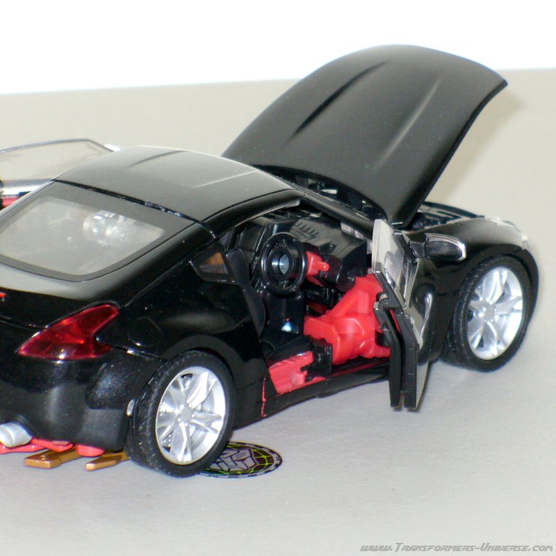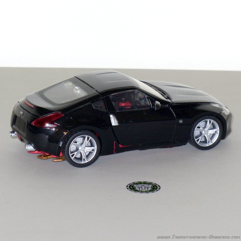 Vehicle Mode: A Nissan Fairlady Z (350Z for the US) is the alt-mode of choice for this Megatron. It is a slick little sports car that gets the job done. It has all of the details on the outside that it should, but the black paint job causes it to get lost. On the other side of the coin, it hides the few panel seams on the figure. And yes, the rims, taillights, and tailpipes are painted. If you look just right from the back you will see the two swords sticking out from the bottom of the car.