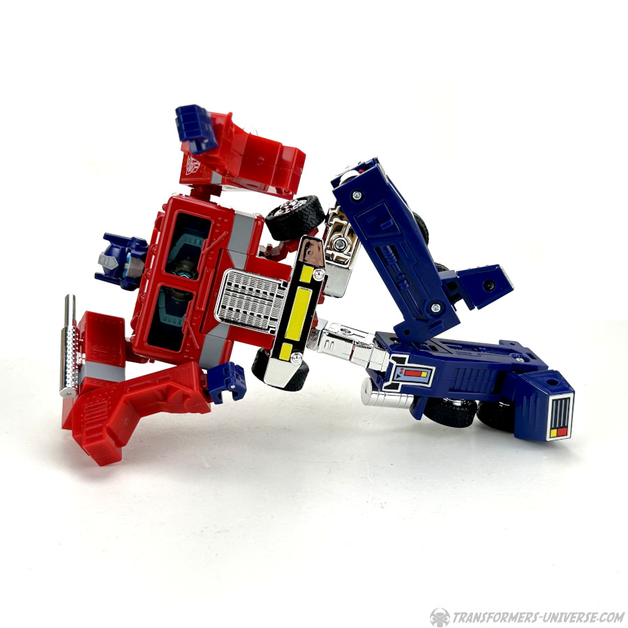 Prelude: It was an idea so simple that the most amazing thing about it is that no one came up with it earlier. Step 1, take G1 Optimus Prime, one of the most beloved toys of all time. Step 2, give it present-day articulation. Step 3, profit! So simple. So here we have the execution of this simple idea: Missing Link Convoy. Let’s say go!
