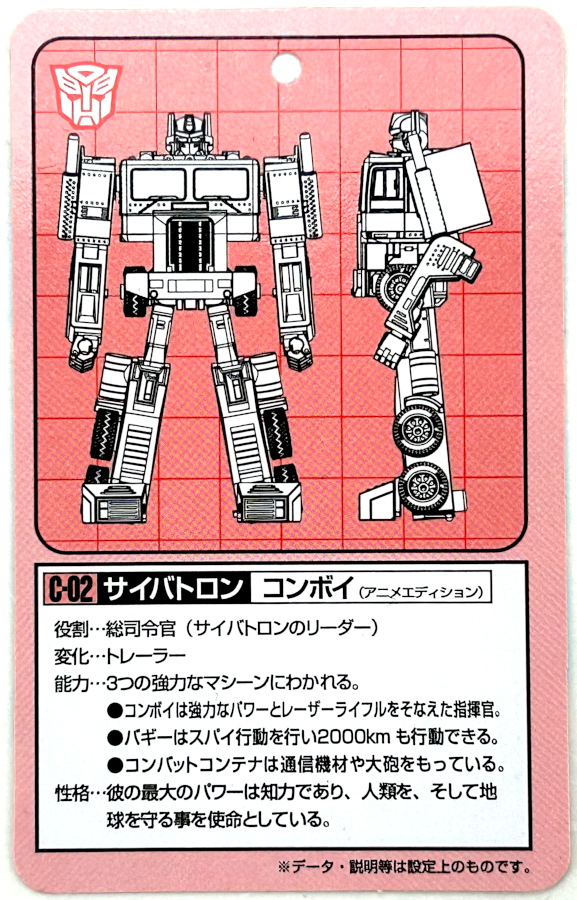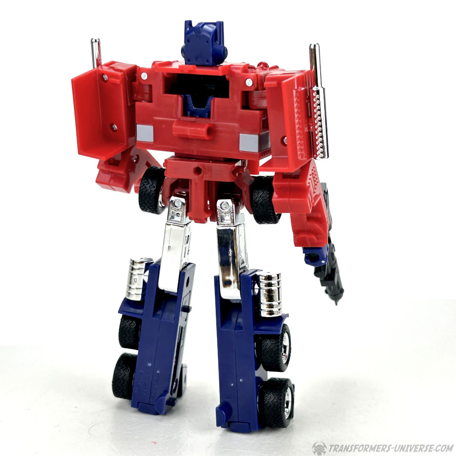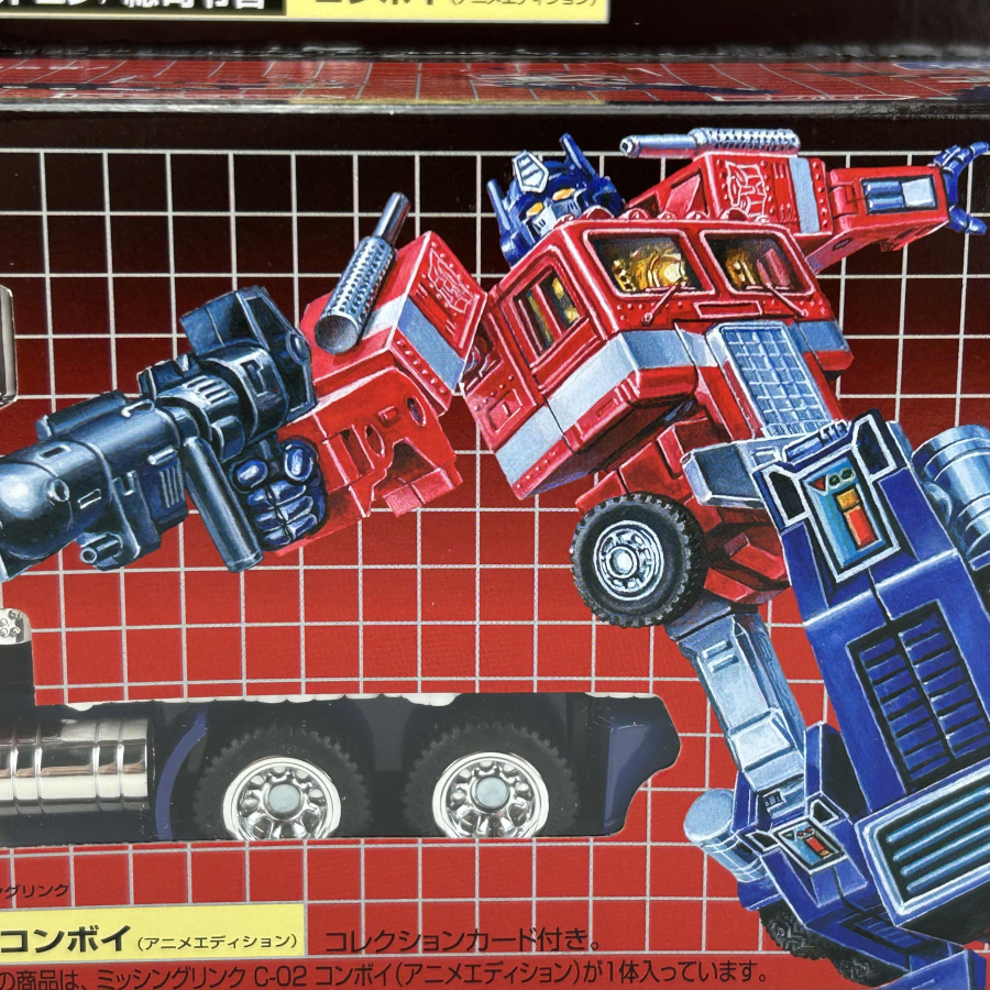 Remarks: Across 40 years of Transformers, few characters have stayed so consistent in their look as Optimus Prime, whose modern incarnations still harken back to that original Diaclone Battle Convoy toy from the early 80s. And with most of the kids who played with it back then now entering an age where nostalgia for the good old days is rampant, it seems like the most natural thing in the world to reissue that old toy, just with updated articulation. Takara did it and it paid off.