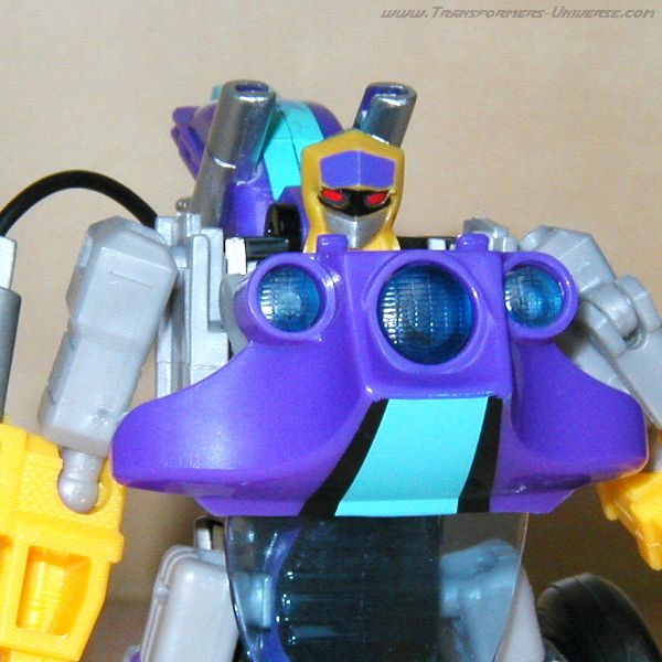 Double Face is a very good-looking, posable robot. He's a small guy, sure, but for a small guy he offers a lot. Apart from his good looks and nice colouring he also features a pretty good gimmick. The weapon on his forearm is connected via a cable to his body and it lights up. Nifty, eh? Anyway, Double Face is as good a basic-sized robot (though the size-classes didn't really exist yet back in G2 days) as you'll find anywhere, so a definite thumbs up for the robot mode.