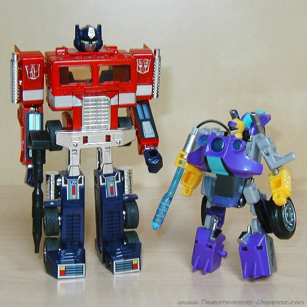 Robot Mode: Double Face is a clear homage to Armada Sideways, both in robot and in vehicle mode. The same colouring, the same-shaped head (at least when Sideways isn't wearing a Headmaster), the same kind of weapon. Of course the head and weapon came first on this mold, seeing as the original of this figure was part of G2, but more on that further down.