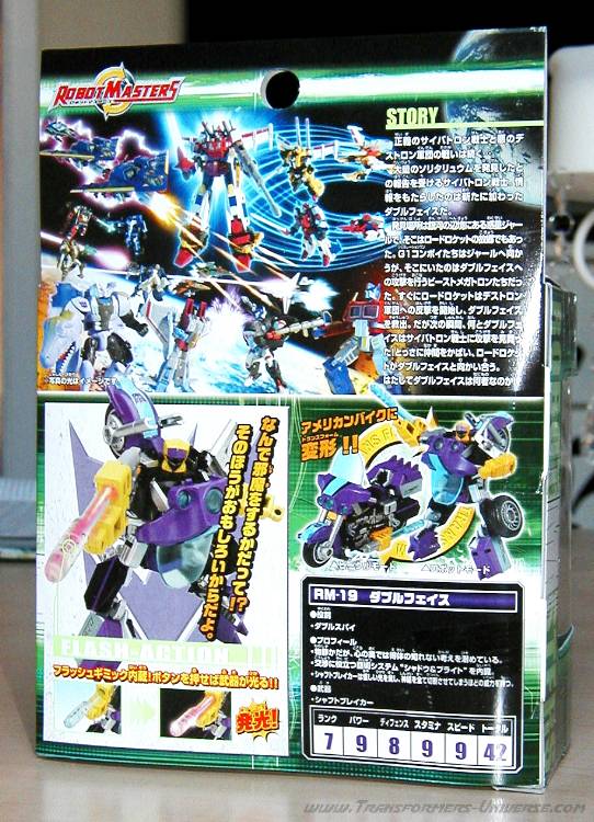 The Robot Masters series brought back quite a few figurs from the G2 days and since I'm currently on a G2 trip, I couldn't get past Double Face (and he was on clearance as well). A very nice figure, a nice recolour to make him a homage to an Armada character (who was probably inspired by the original G2 figure at least somewhat), an all-around good package. Not quite good enough for an A rating, but very close. Definite recommendation.