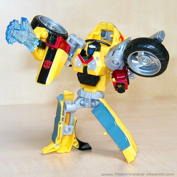 Originally a G2 Lasercycle, Road Rocket is still armed with the same weapon of those bygone days: A transparent weapon, a chain saw in his case, which can be made to light up thanks to the electronics in his backpack. I really like those, not sure why, but I'm a big fan of the Lasercycles and Laserrods. Anyway, Road Rocket manages to pull off the gimmick nicely without being overwhelmed by it.