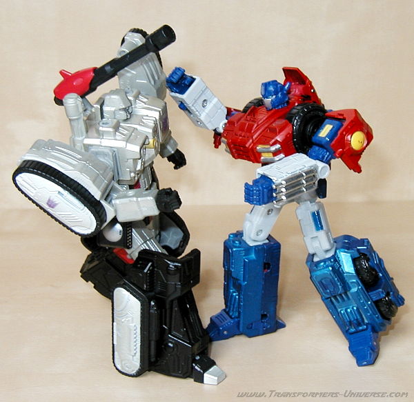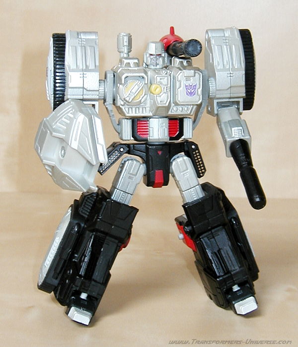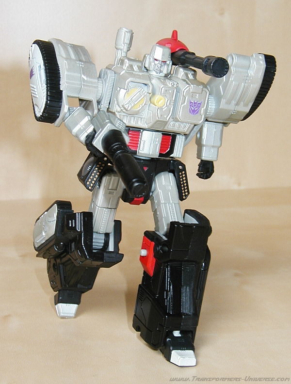 Remarks: The War Within series went the sensible way of making this early version of Megatron a tank instead of a handgun, but the end product was a character that tried to much. He's supposed to be this big tank, but still look like the gun-Transformer we know from G1. The result is something that just doesn't look right to me. That's talking about the robot mode, of course. The vehicle mode is pretty much a total loss. It's not necessarily Titanium's fault, the comic book design they tried to be faithful to left something to be desired already. So despite the fact that I adore the War Within series (Dreamwave's best comic book by far), I can't really put this figure here any higher than a good average.