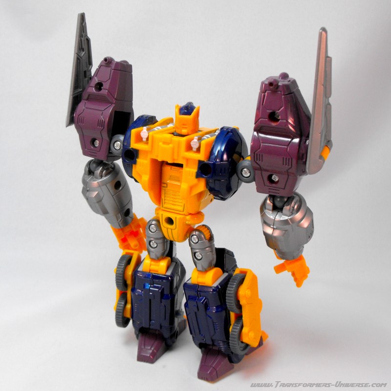 Articulation is pretty good for this figure. Sure, his somewhat exaggerated proportions get in the way at times, but apart from that, he’s pretty bendy. The figure is partially made from die-cast metal, so it feels nicely solid and has a stable stance as well. Some of the joints seem like they might become loose sooner rather than later, but that’s more a feeling than a definite complaint. Overall, a very nice robot mode with no real negative points.