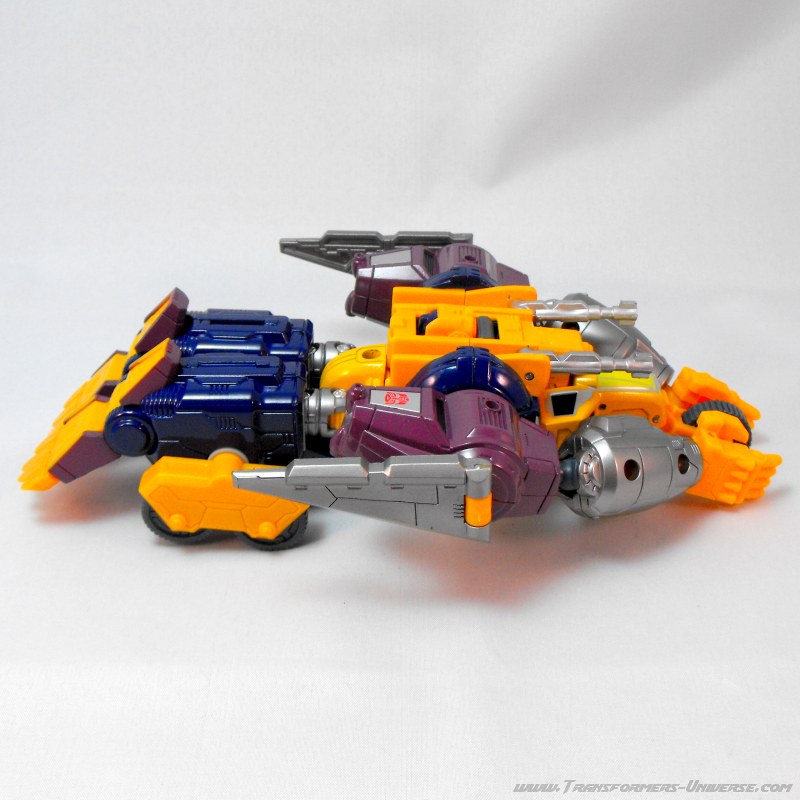 Alternate Mode: The original Optimal Optimus was a quad-changer, able to transform from robot to ape, jet, and ground transport. The Titanium version, being smaller, got rid of one of those alternate modes. Strangely enough they left out the beast mode. Not that it was a great mode or anything, but considering that this is a Beast Wars figure here, it kind of seems silly to get rid of the beast mode of all things. Anyway, we’re left with the jet and ground transport mode.