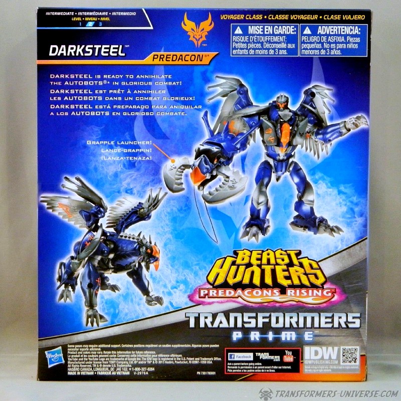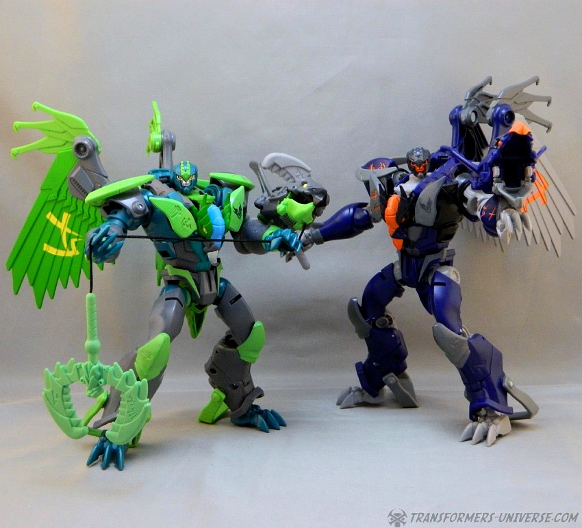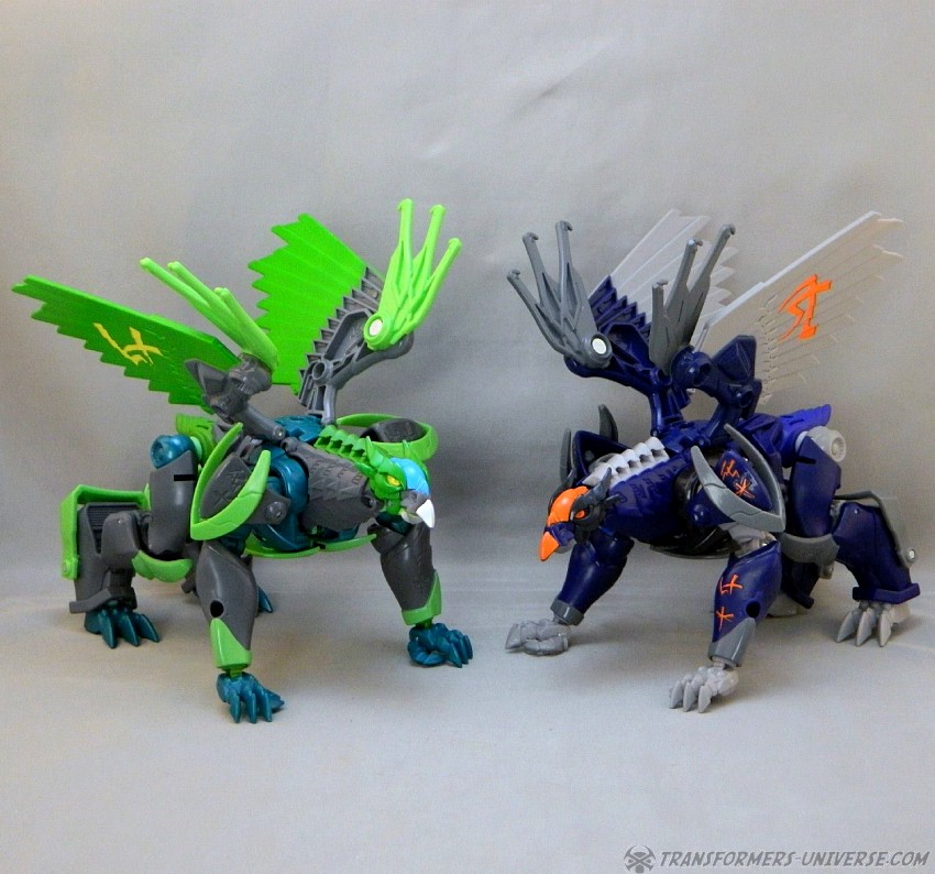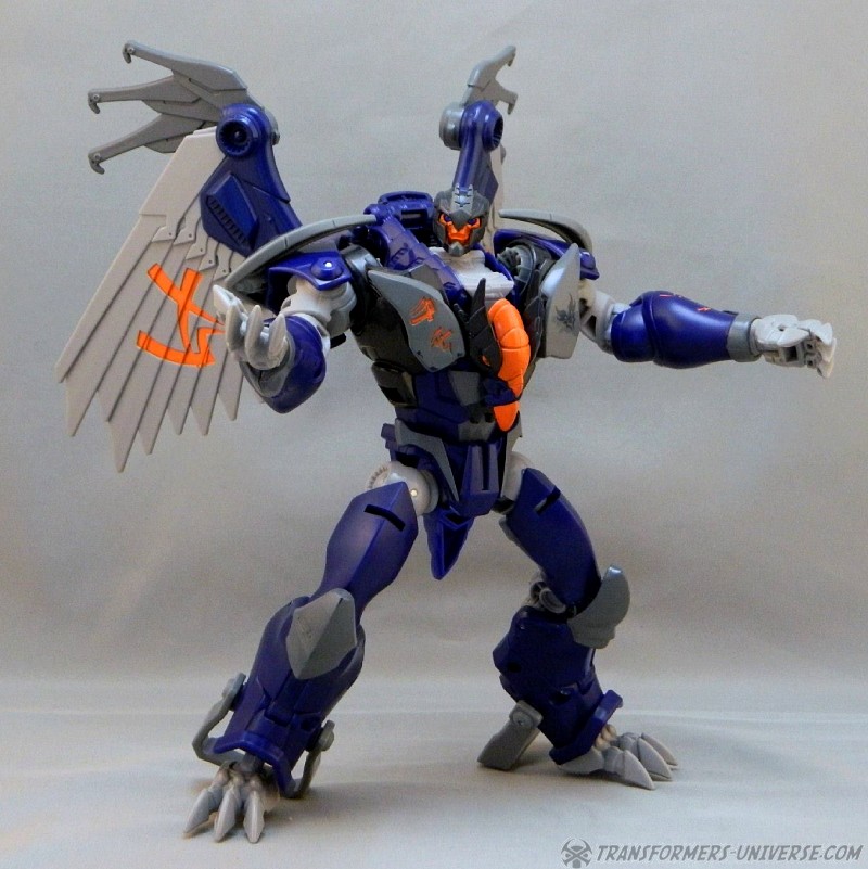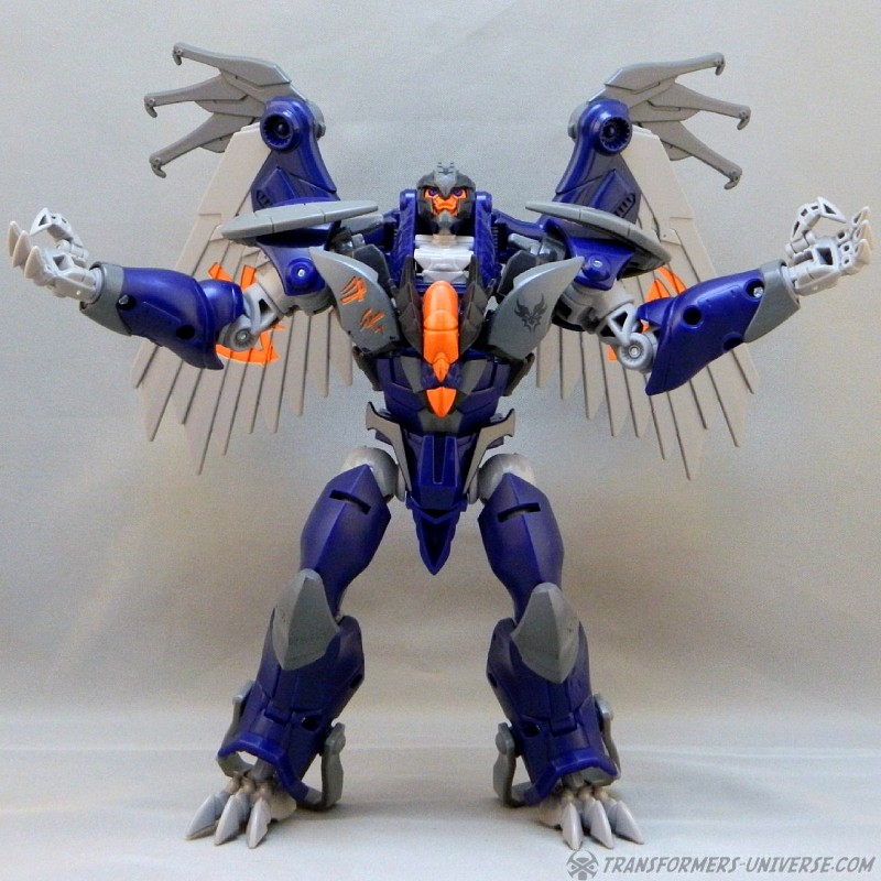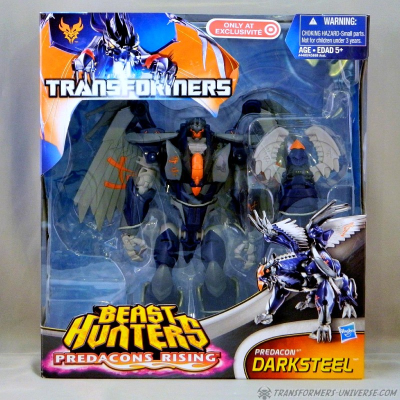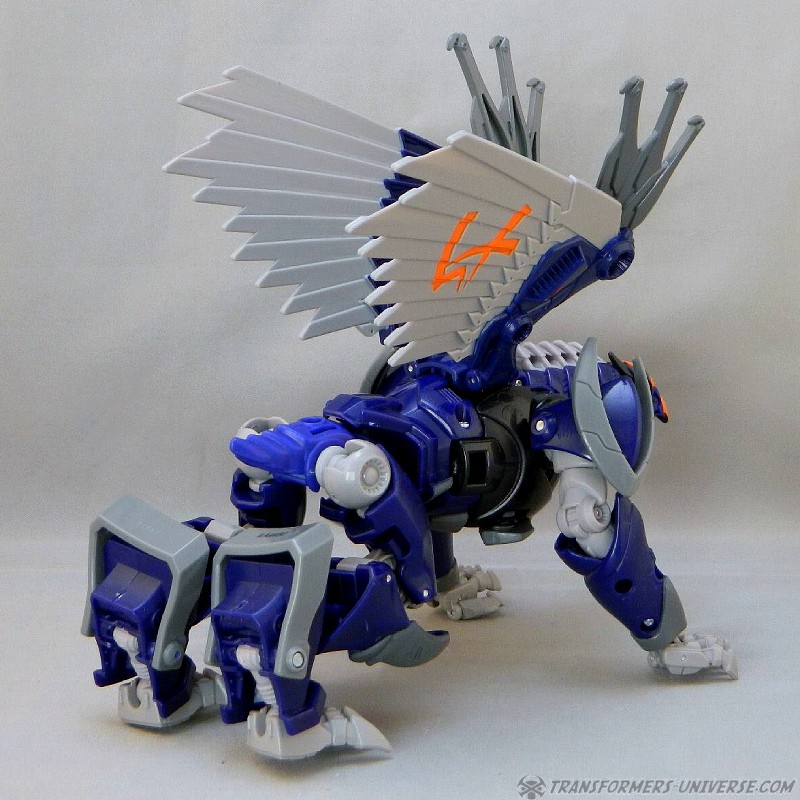 Remarks: Darksteel is a straight-up repaint of Beast Hunters Grimwing, whom I have previously reviewed. He was part of the Target-exclusive "Rise of the Predacons" subline and, unlike the much easier to find Grimwing, actually appeared in the Predacons Rising TV movie. The Robots in Disguise sequel later revealed that he, along with the other Predacons, was tricked and killed by Starscream, a rather inglorious ending for what was supposed to be a near-invincible beast. Anyway, Darksteel looks great in blue. Still doesn't explain why this mold was never retooled into Beast Wars Silverbolt.