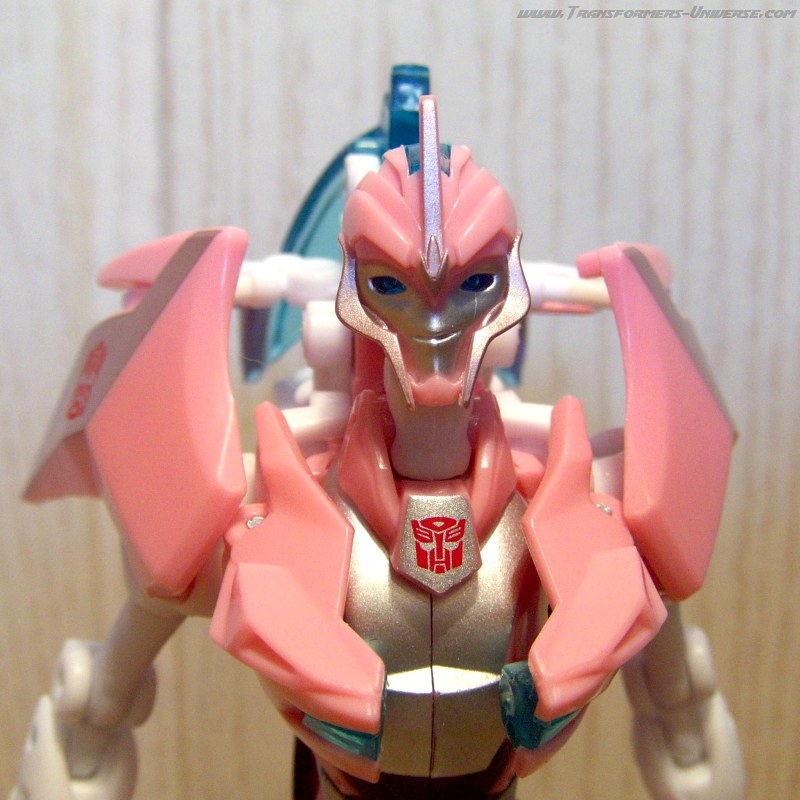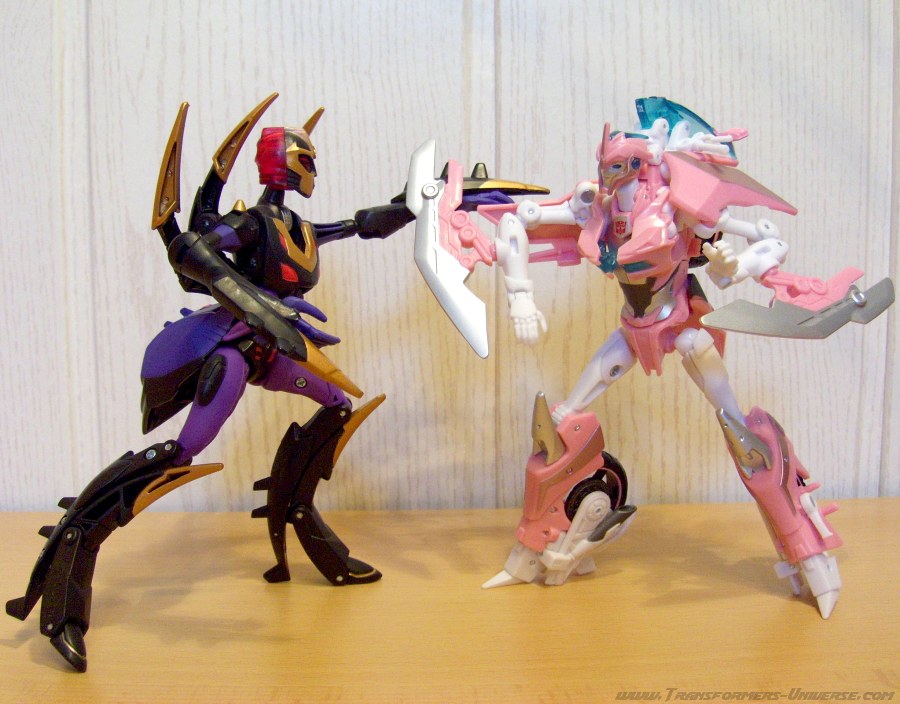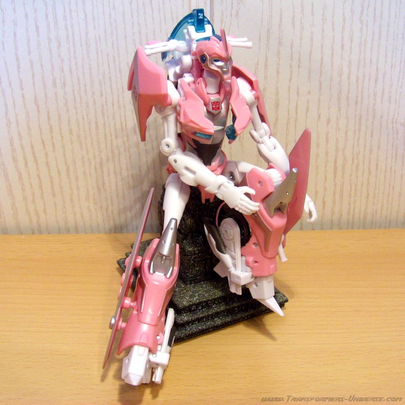 Everything else is like it should be: great colors, nice details, and it is very much apparent that a lot of love went into this piece of work. The blades from the bike mode can either stay on the legs, which I prefer, or fit on her arms. I think they are a little too big for the arms, too much bulk, but then again, it’s possible for being show accurate. All in all a great figure, highly posable, and just great to look at when on display. Pure Arcee and with this version even in G1 color.