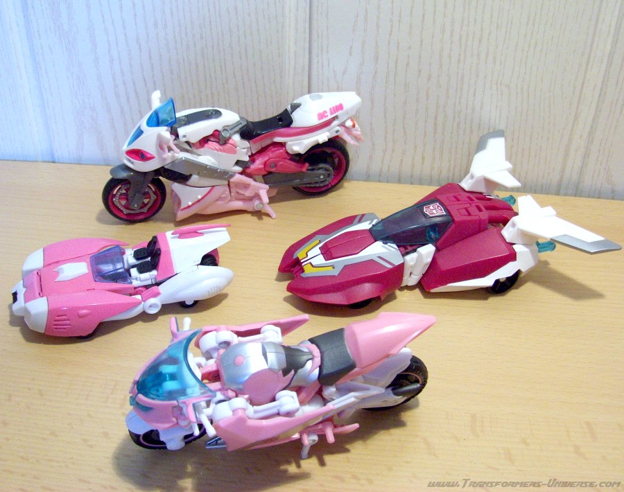 Alternate Mode: We start with her alternate mode and, of course, it is a motorcycle. Pretty much standard by now, ever since Energon Arcee, but fine with me, it can stay that way. The bike itself is very compact and everything folds together nice and tight, which makes it a little smaller than its Movie predecessor. Also, she has one common problem: the Movie version had its hands sticking out the back, Prime Arcee has them in front of the engine block. They are not that visible, but they are there if you are looking closely. The Movie incarnation looks a bit more realistic, less bulky and does not show half the arms when looking from above.