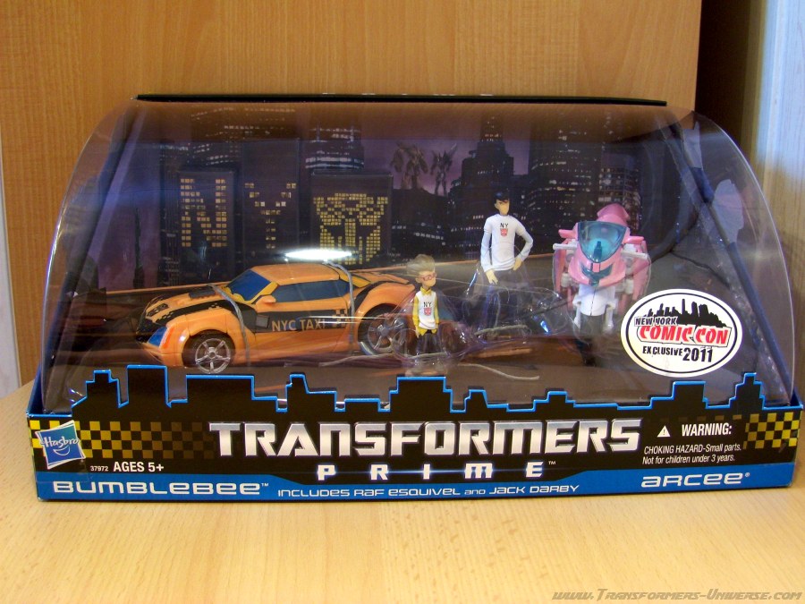 Prelude: Well it happened again. Right after Deluxe Optimus Prime from the SDCC comes the NYCC 2-pack including Bumblebee and Arcee. And of course their respective human sidekicks are included as well, but more about them in the review. Both figures have not been officially released except in a few Asian countries that already got some of the first edition deluxe toys. So comparison pictures between those versions and the retail versions will have to wait and could not be done at this time.