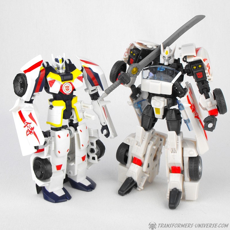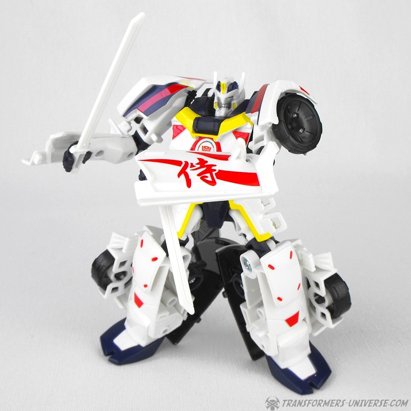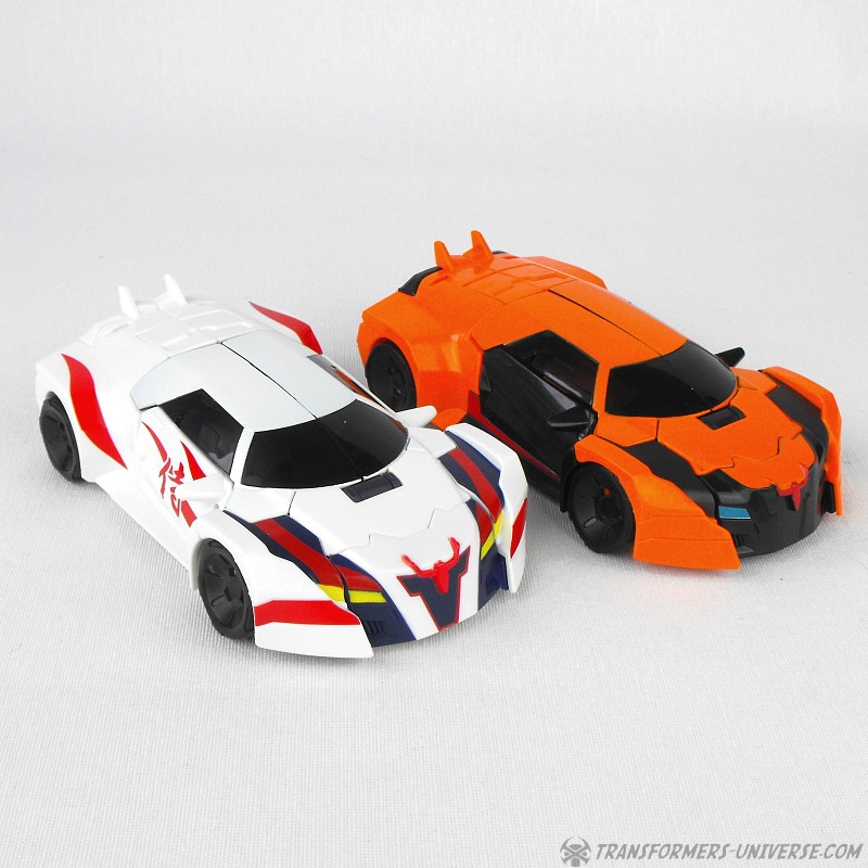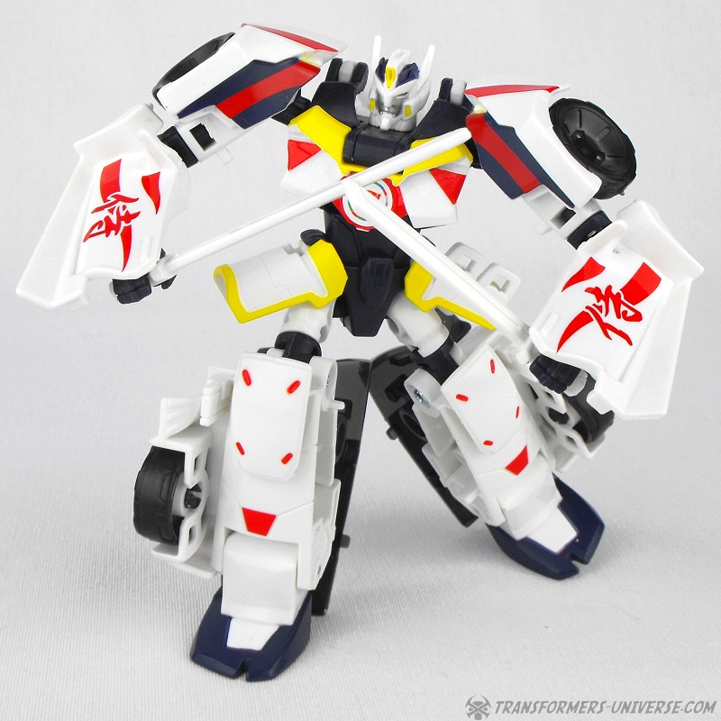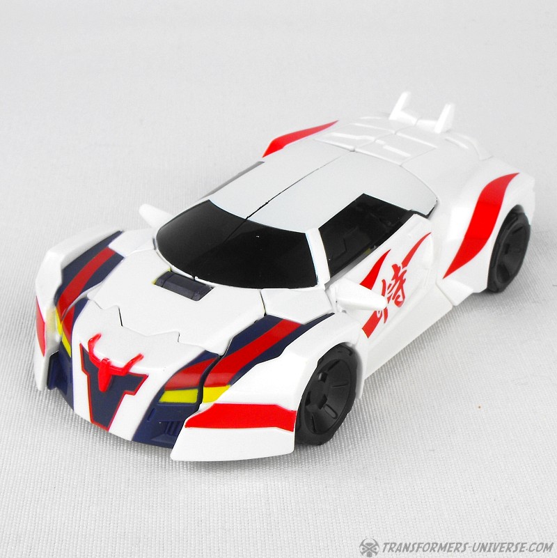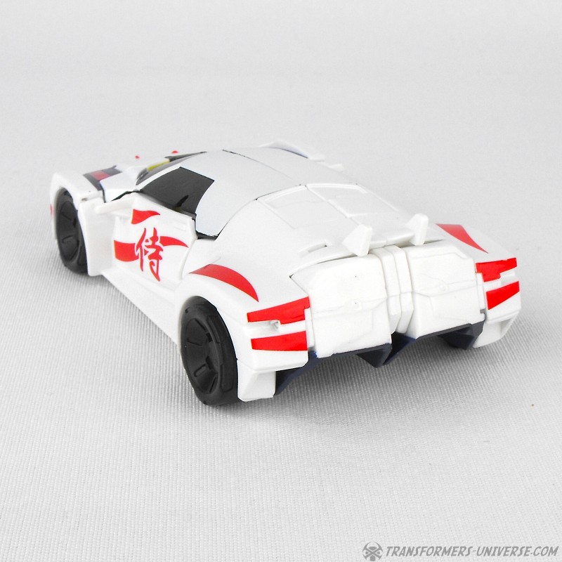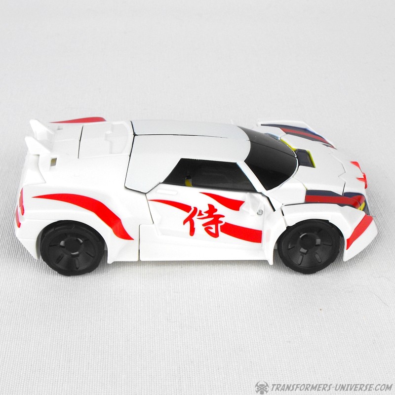Alternate Mode: Unsurprisingly Drift’s car mode is now also mostly white with red, black, and yellow details. A close match to Generations Drift down to the Japanese characters on the side doors, the car looks sleek, sexy, and fast. Again, very nicely done.