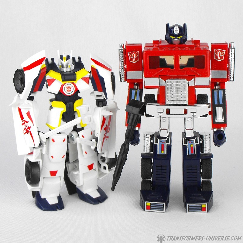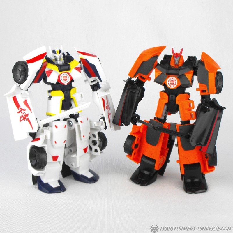 Remarks: Since his first appearance in the IDW comics Drift has gone through quite a number of colors. He started white, turned red, turned blue, turned orange, and now he’s back to being white again in a homage to the first one. Takara redid what I consider the best RID Warrior-class mold so far in this tribute paintjob and did a fabulous job of it. Drift Origin Mode comes in a two-pack, but he’s worth the price of the package all by himself in my opinion.