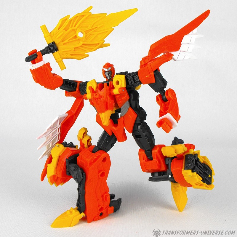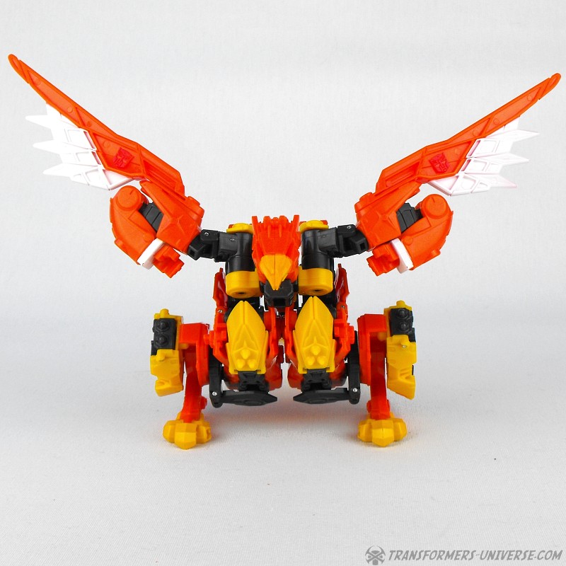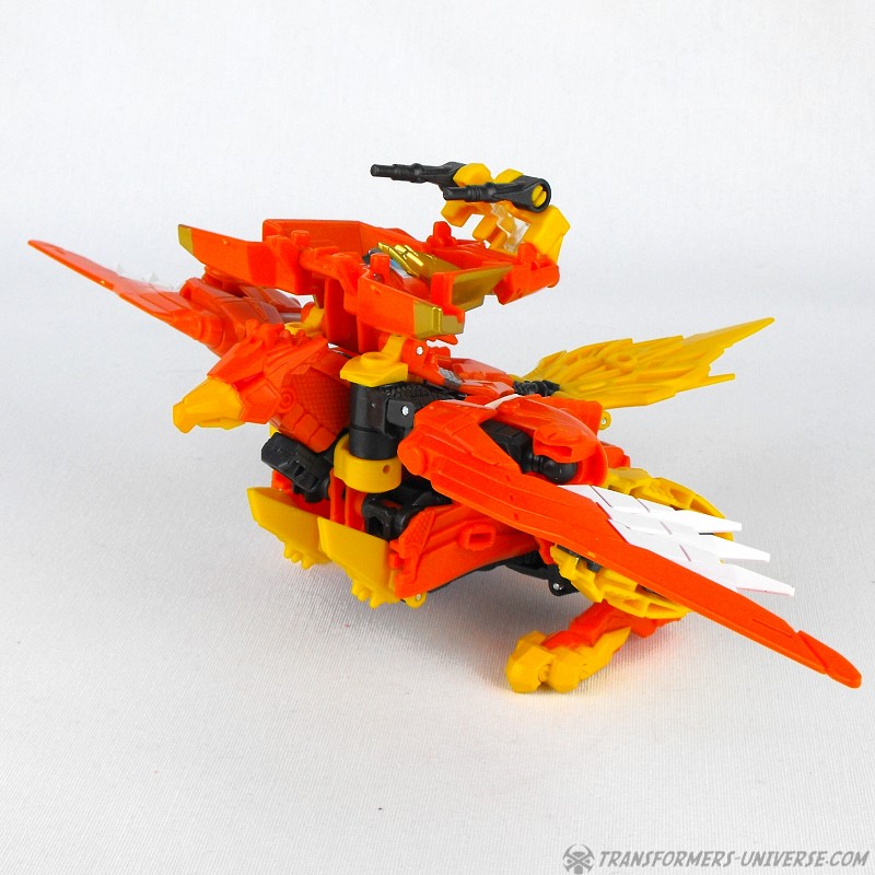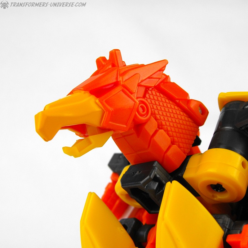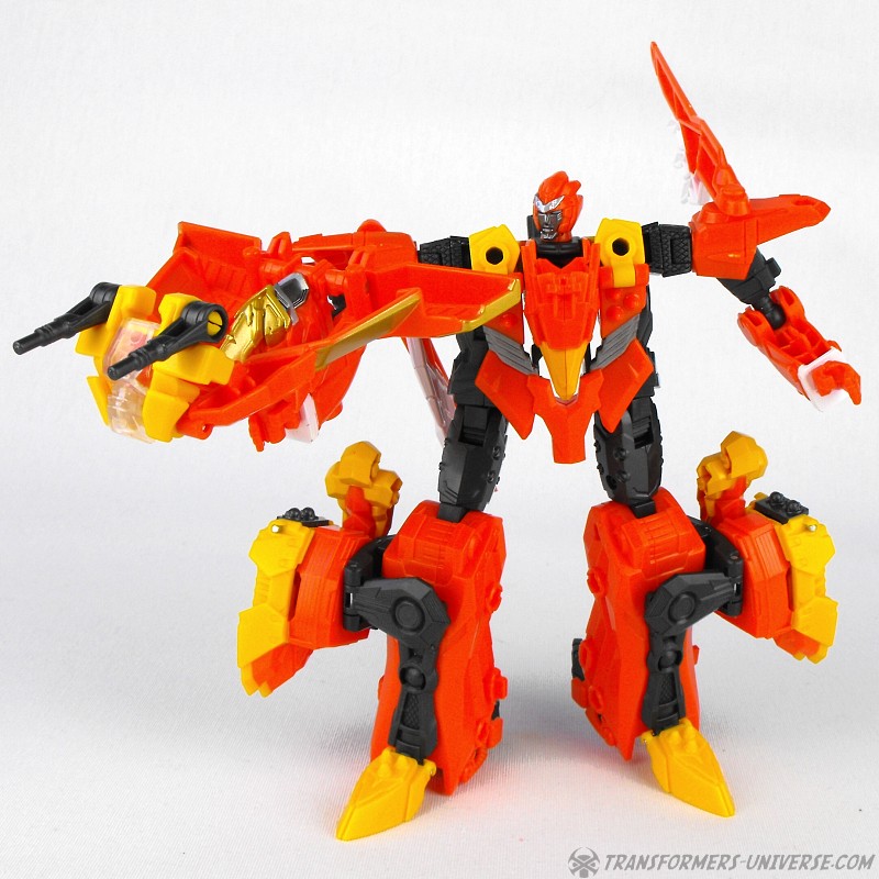 Part of the Autobot army stationed against the Predacons. Member of the commando "Shinobi Swordbot Team." Specializes in wind based ninjitsu called: "Wind Hawk Shinobi." Despite his brilliant appearance he is light hearted yet sets the mood for the Shinobi team. His tail transforms into flight fans putting the Predacons at his mercy with his skill of manipulating wind. Treats Fuma as if he were his big brother yet is oblivious that he treats him this way.
