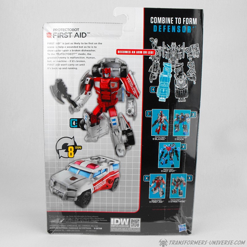 Otherwise: no complaints. A fully satisfying Deluxe-class robot that nicely translates the character of First Aid as seen in the original cartoon and the current IDW comics. Thumbs up.