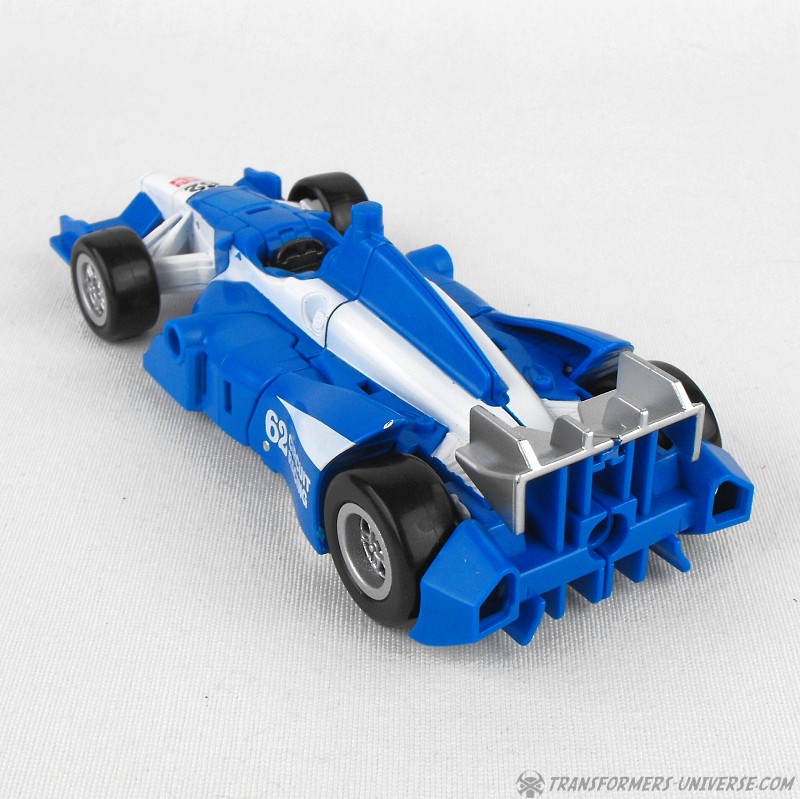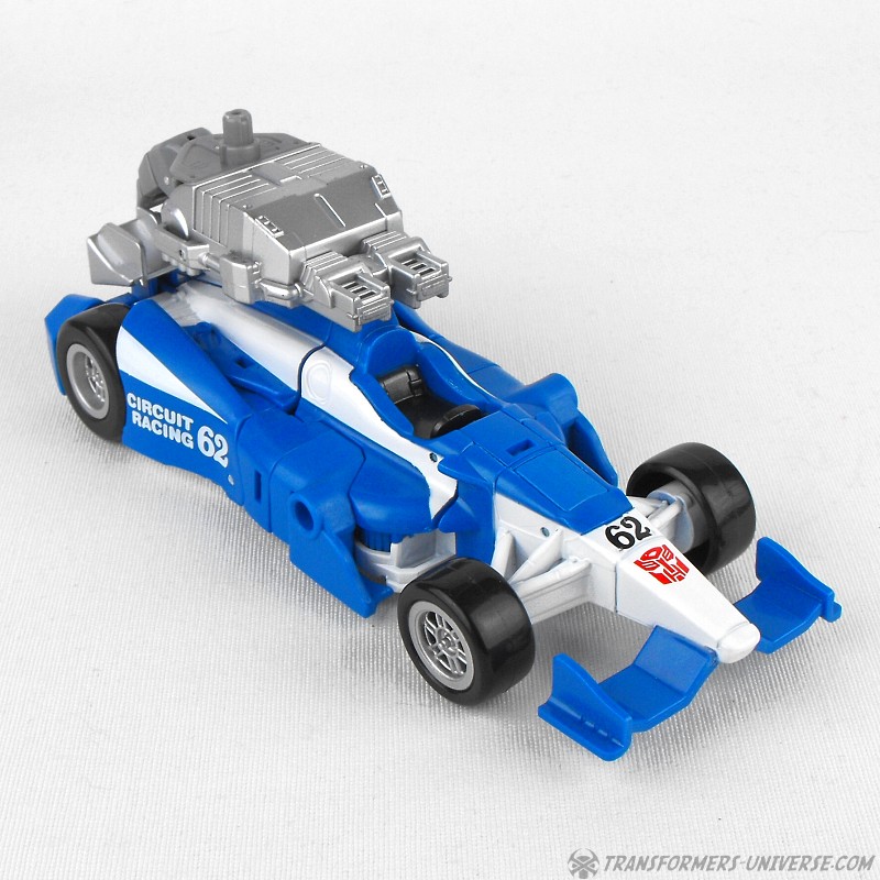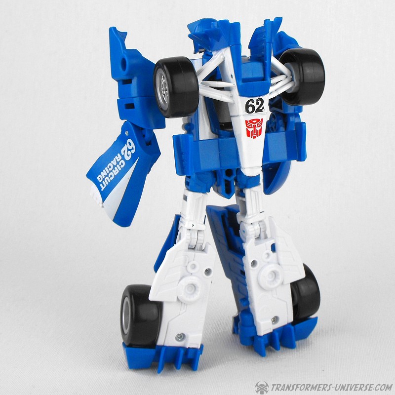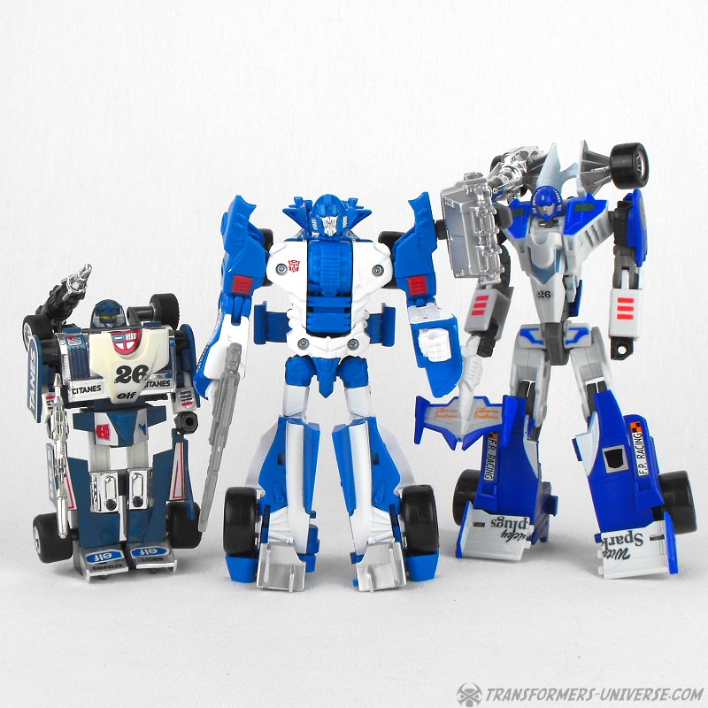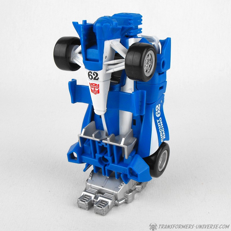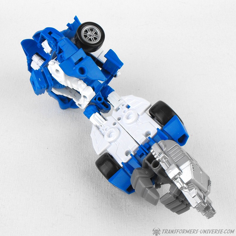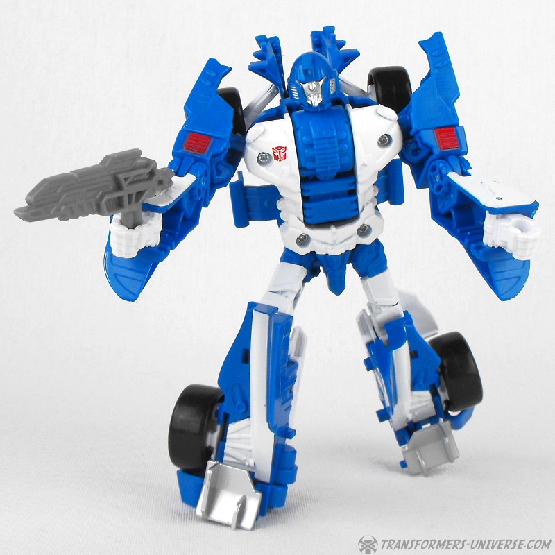 Remarks: Mirage is a repaint of Dragstrip, so look there for the full review. Just some words on the differences here. Apart from his familiar blue and white paint job, Mirage was also given a new head sculpt, which is pretty much a dead ringer for Mirage as he currently appears in the IDW comics and a pretty close match the G1 cartoon character, too. The rest is more or less the same, even the weapons are identical, just a different color (silver instead of purple). And, of course, he can still become the limb of a combiner, in his case he is intended to become part of Optimus Maximus.