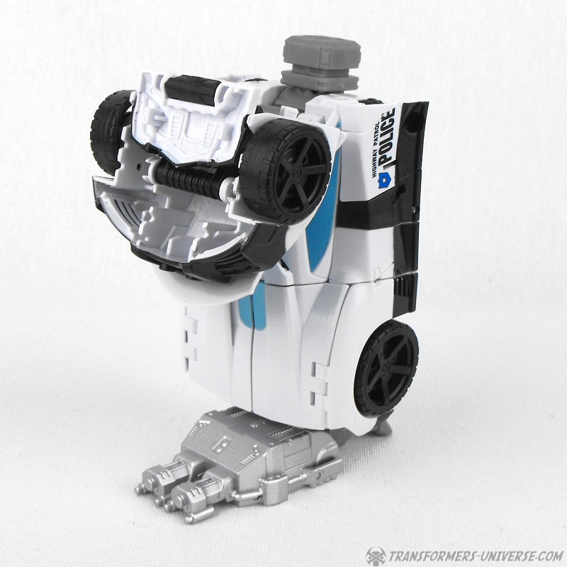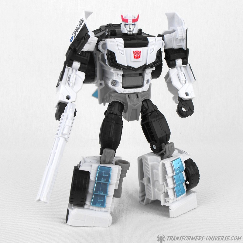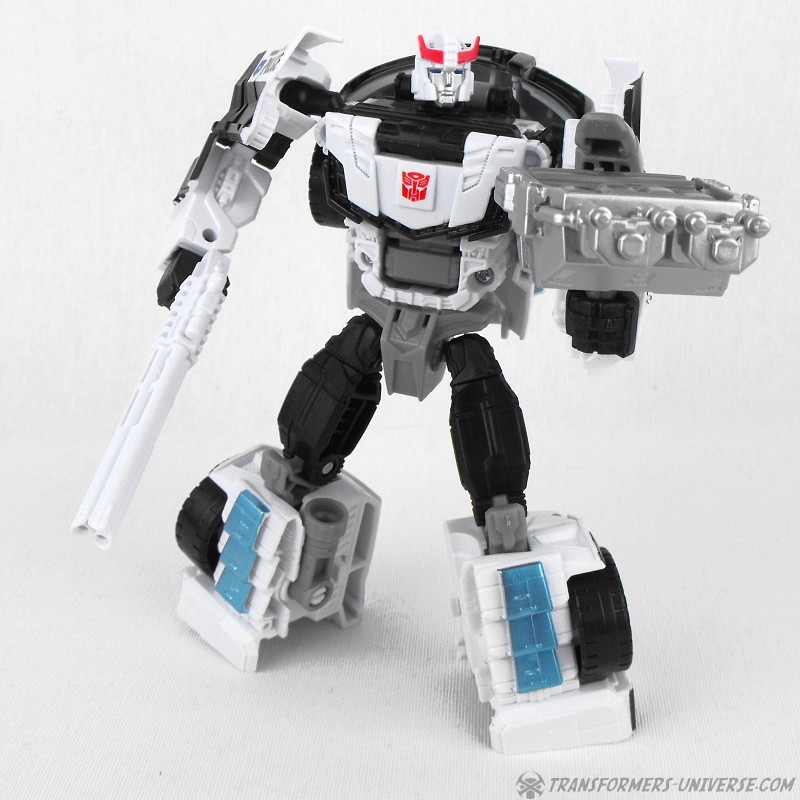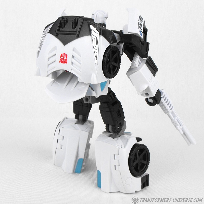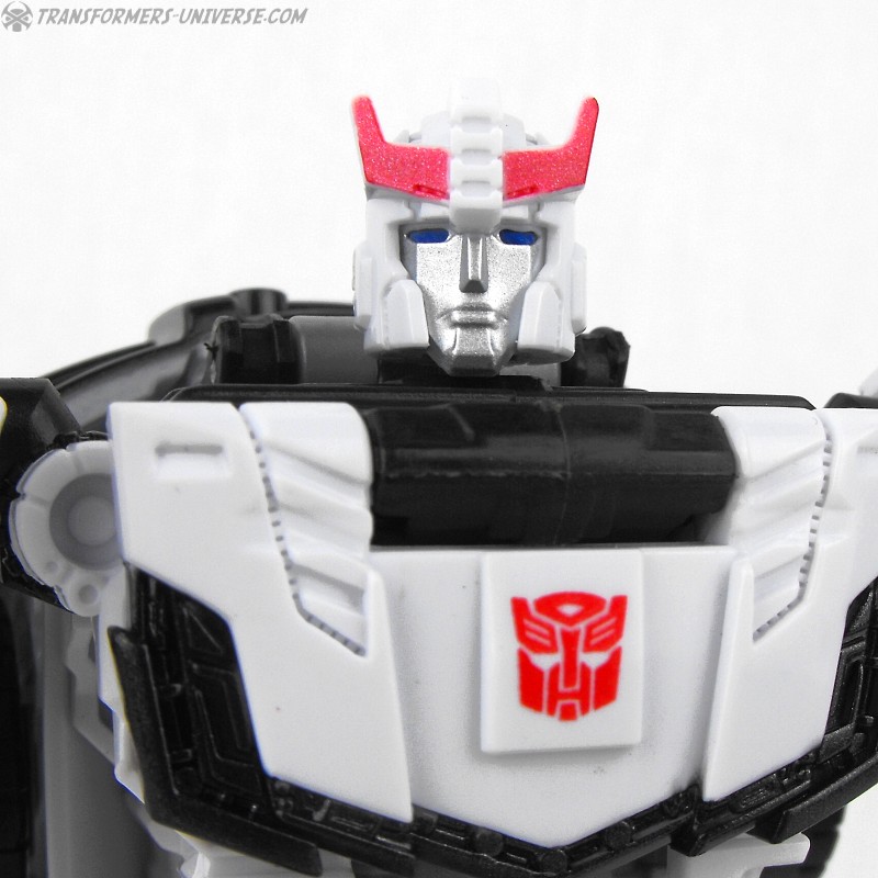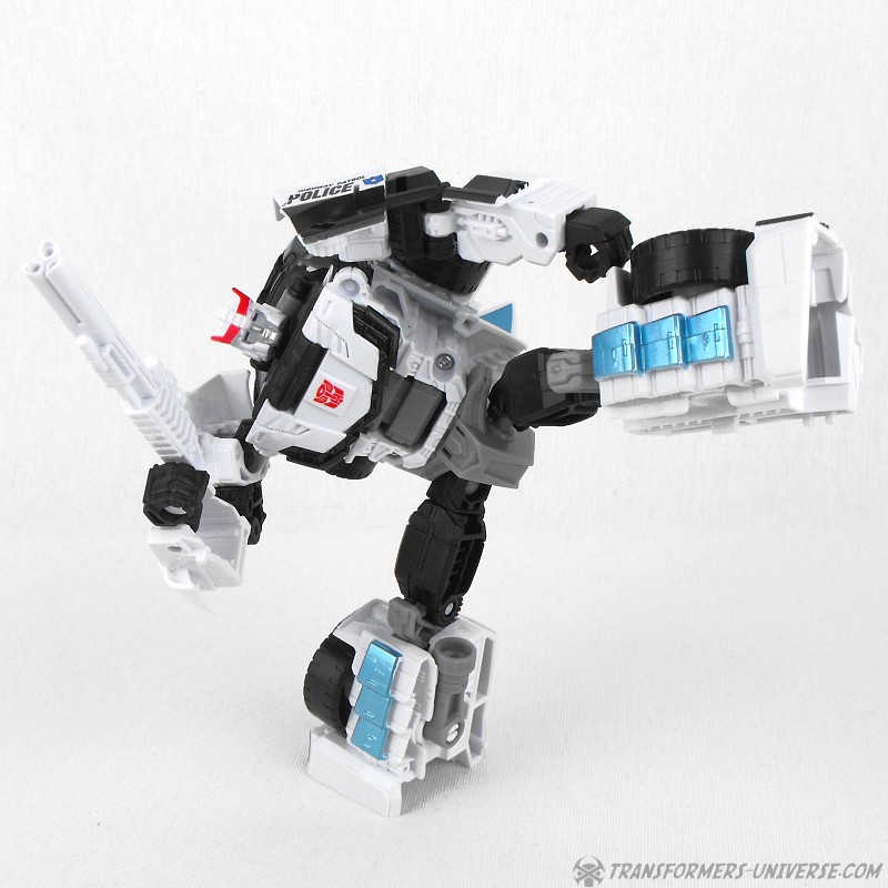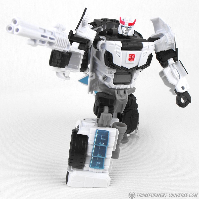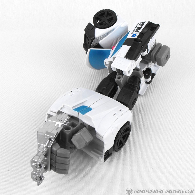 Remarks: Prowl is a repaint, complete with new head, of Combiner Wars Streetwise (himself a retool of Dead End), so just a few short words on the differences here. Despite being the same mold, the partial reversal of colors in robot mode (white for black and vice versa) coupled with the new head makes Prowl look like an entirely different figure. And despite the fact that he is missing many of Prowl’s classic characteristics (wing doors, hood as chest) the figure still manages to look very Prowl-like, so no complaints here at all.