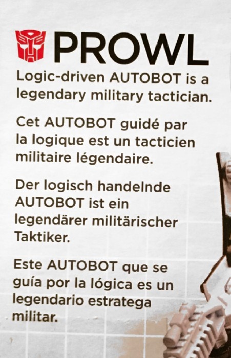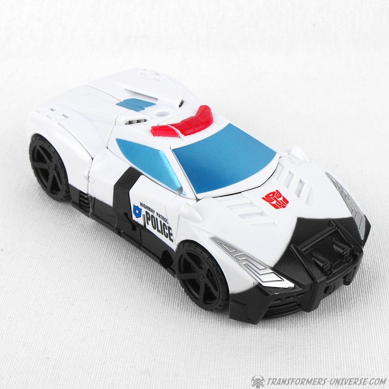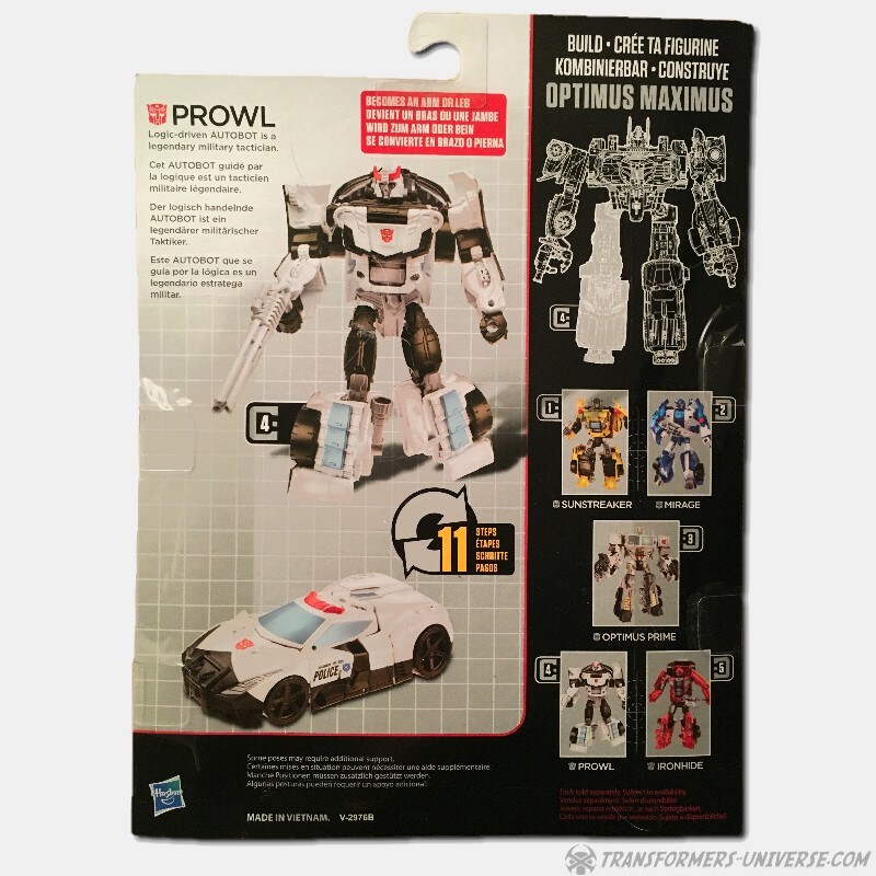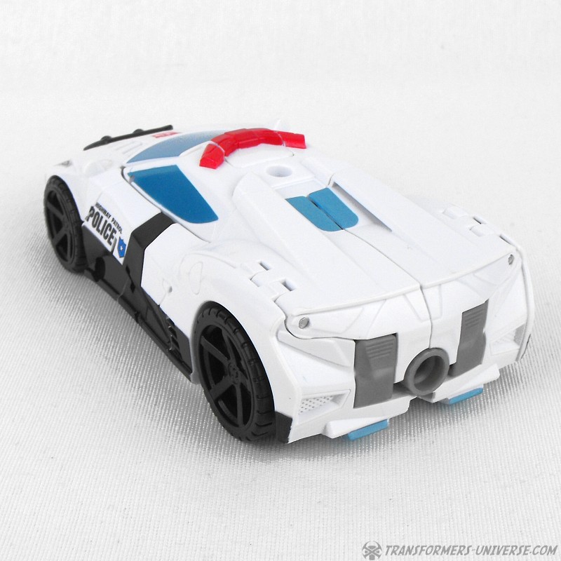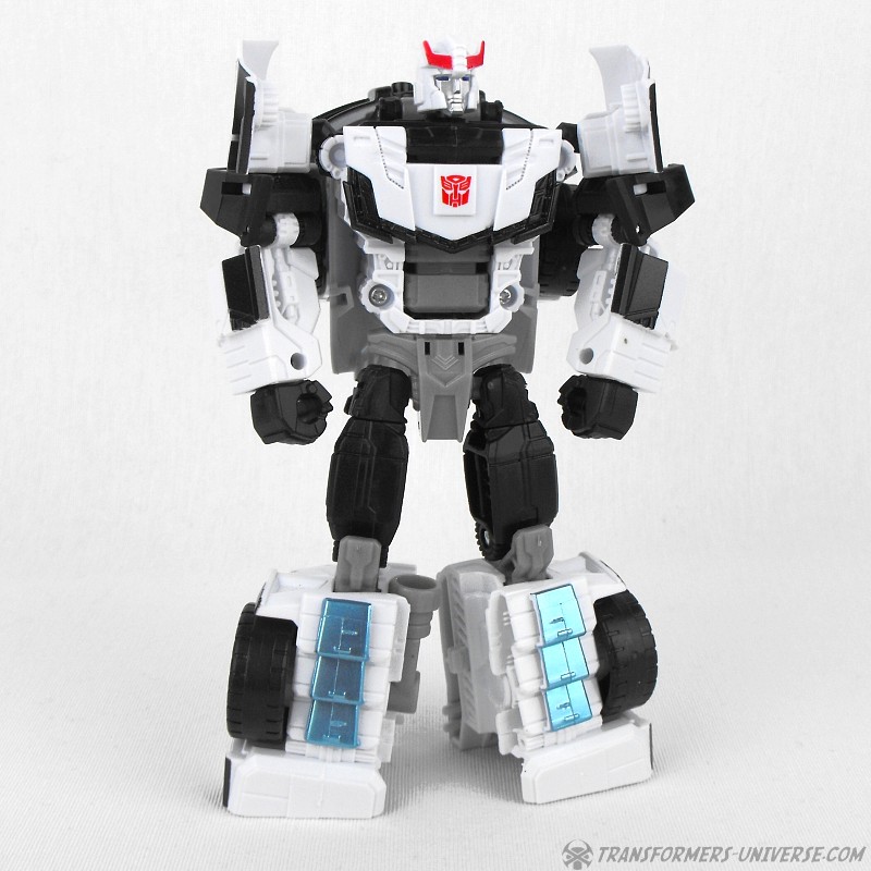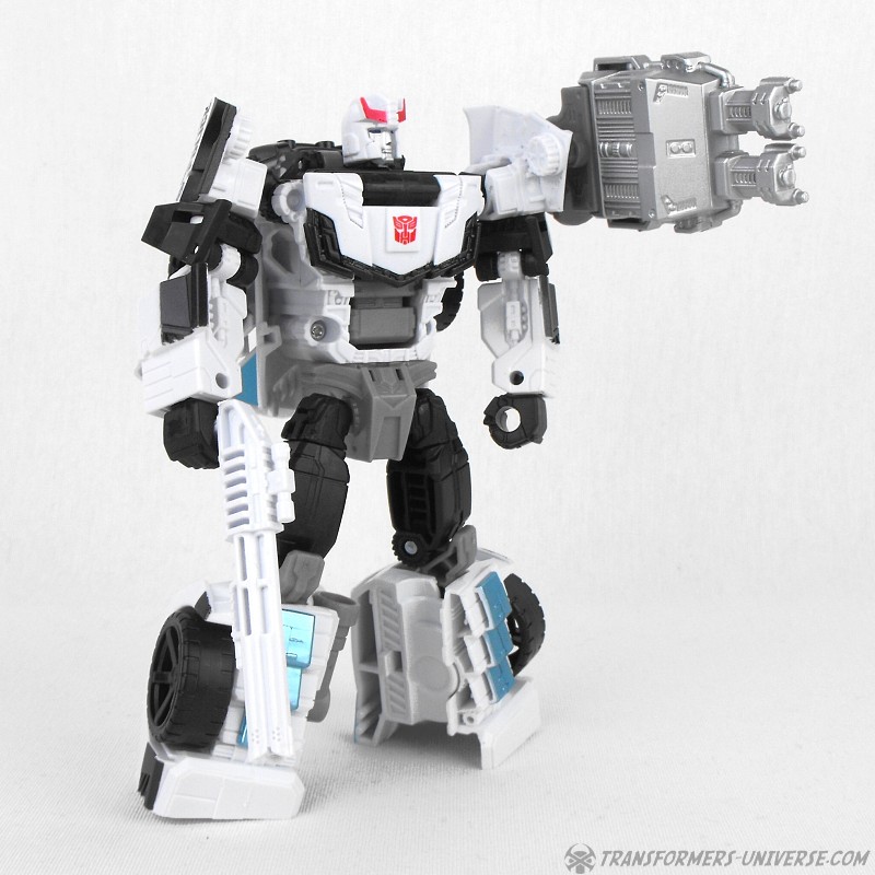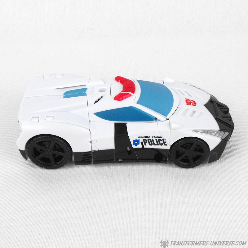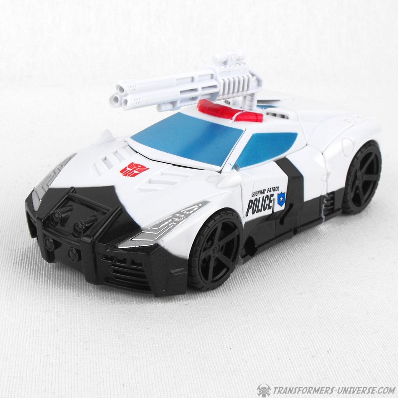Remarks: Prowl is a repaint, complete with new head, of Combiner Wars Streetwise (himself a retool of Dead End), so just a few short words on the differences here. Despite being the same mold, the partial reversal of colors in robot mode (white for black and vice versa) coupled with the new head makes Prowl look like an entirely different figure. And despite the fact that he is missing many of Prowl’s classic characteristics (wing doors, hood as chest) the figure still manages to look very Prowl-like, so no complaints here at all.