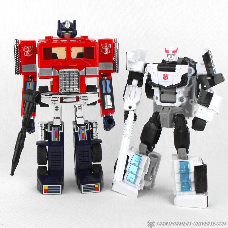 The same holds true in vehicle mode, where the two cars are essentially identical, but the paint job makes them look quite different. So despite the fact that Prowl is just a repaint of a retool (in a very, very repaint/retool-heavy line), he is quite well done and I actually like him a bit better than Streetwise. Probably just the more rounded character talking here, but anyway. Prowl becomes a limb of Optimus Maximus (or any other Combiner Wars combiner you care to assemble) and does a decent job as both arm and leg. So bottom line: not a must-have, but a very nice figure.