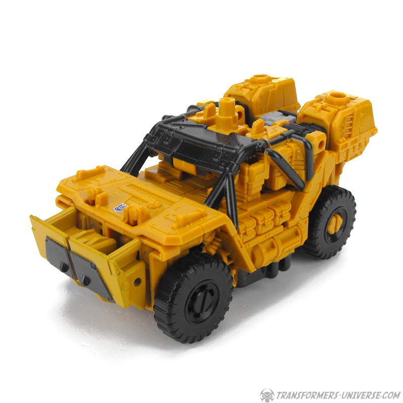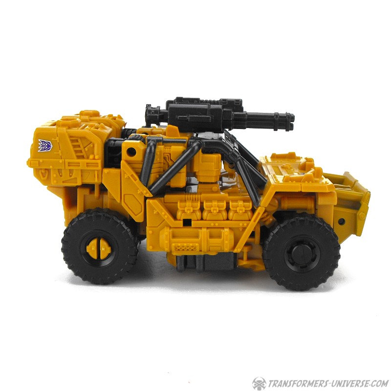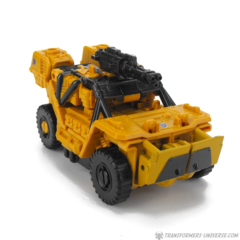 Alternate Mode: Instead of the SWAT vehicle that Rook transformed into, Swindle turns into a somewhat futuristic looking military jeep (possibly a hummer). The vehicle can’t quite disguise the robot arms that form the back part, but overall it does a pretty decent job. The minigun can be mounted on top and you can also mount both weapons stacked, too, but that doesn’t look that great in my mind.