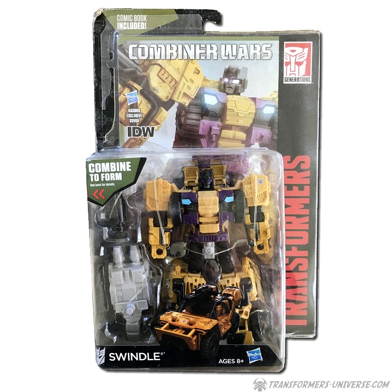 Combiner Wars was a series rife with repaints and Swindle is no exception. That said, the Rook mold works pretty well for him. One can debate whether he looks too muscular, but that’s just about the only flaw. So bottom line: a nice Deluxe figure that does a decent job of portraying a classic character. Probably not the best choice if you’re looking for a G1-accurate Swindle, but fun.