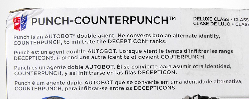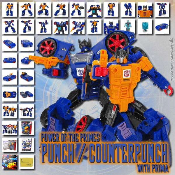 Prelude: To me Punch is one of the most criminally underused characters in Transformers history. He is a spy working undercover among the Decepticons, using a secondary robot mode (that may or may not be developing its own personality) to remain undiscovered. The story potential here is enormous, but the closest we’ve ever come to see it realized was with Animated Shockwave. But hey, now that Punch and his undercover ID Counterpunch have a new toy in Power of the Primes, maybe we will finally see him appear in a non-Japanese-exclusive story one day. Here’s hoping!