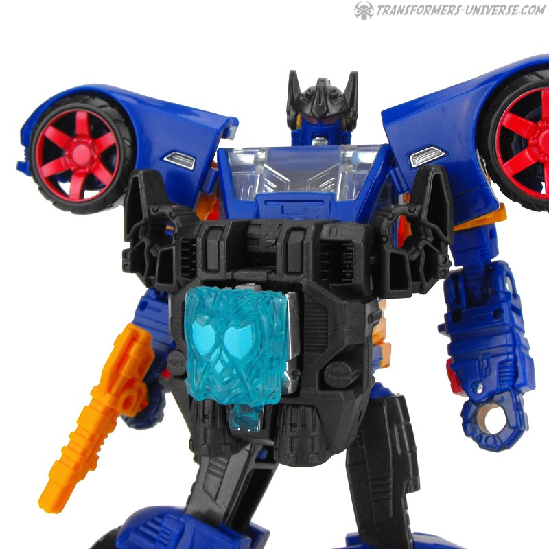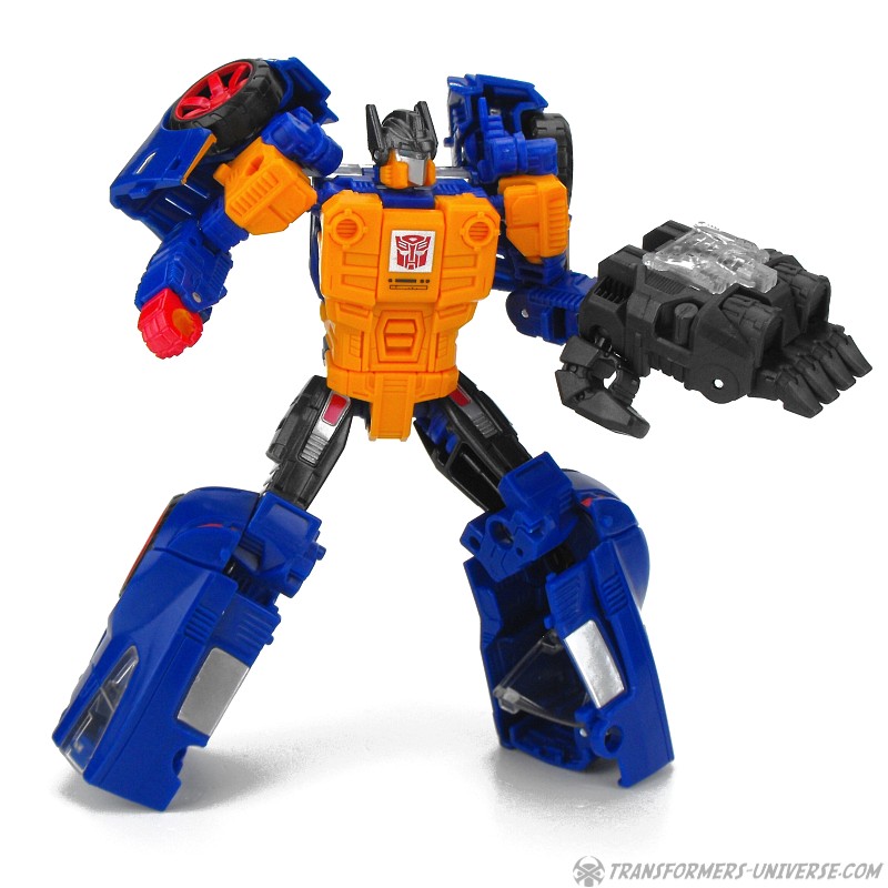 Punch comes with an orange gun and the obligatory chest armor / combiner fist that all Power of the Prime deluxe figures have. It’s a little strange, given that Punch cannot become a combiner limb, but he can still wear the chest armor. He shouldn’t, though, it looks dumb. Anyway, Punch is a very nice looking robot. Barely any car kibble, very lean-looking, and just plain fun. Nothing to complain about.