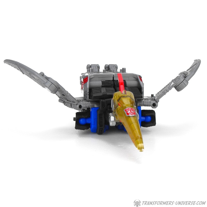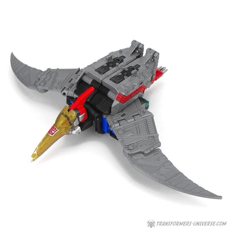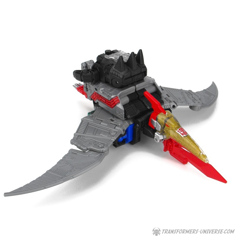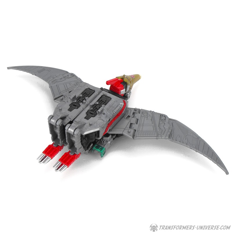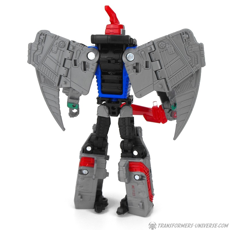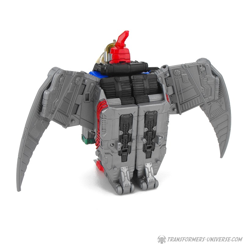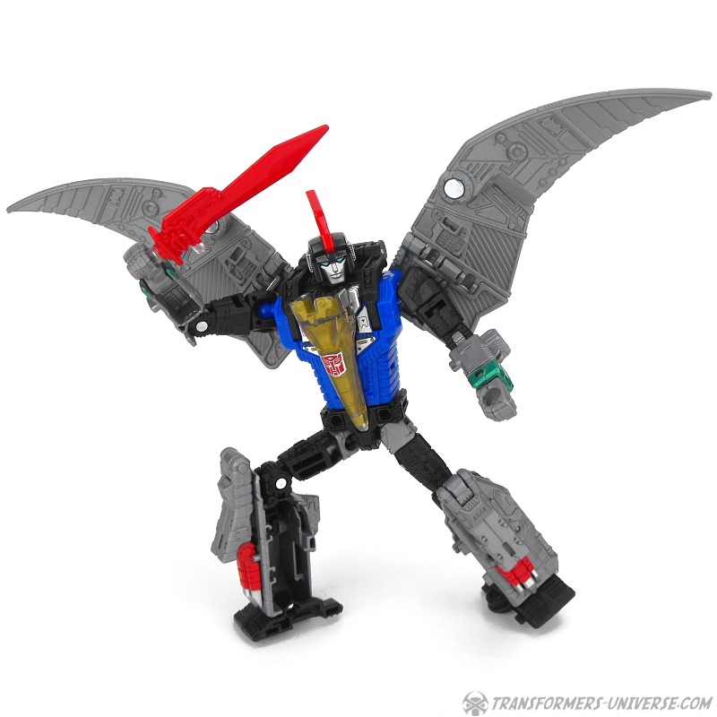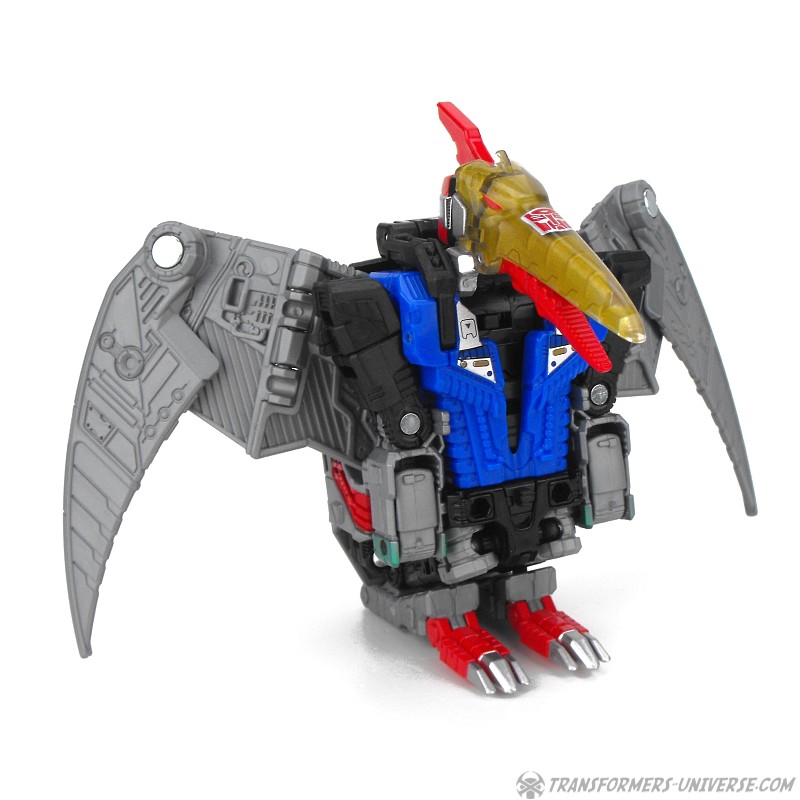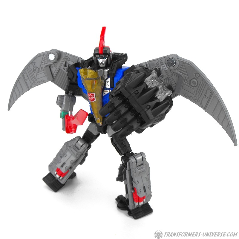 Alternate Mode: Swoop transforms into the familiar robotic Pteranodon we remember from the G1 cartoon. The transformation is pretty much identical to the G1 toy, too, as he folds his legs onto his back and the beast mode head on his chest flips up to cover his robot mode face. Which doesn’t quite work, on my version at least, as the connection between robot mode head and beast mode head isn’t really solid. Not a big thing, though.