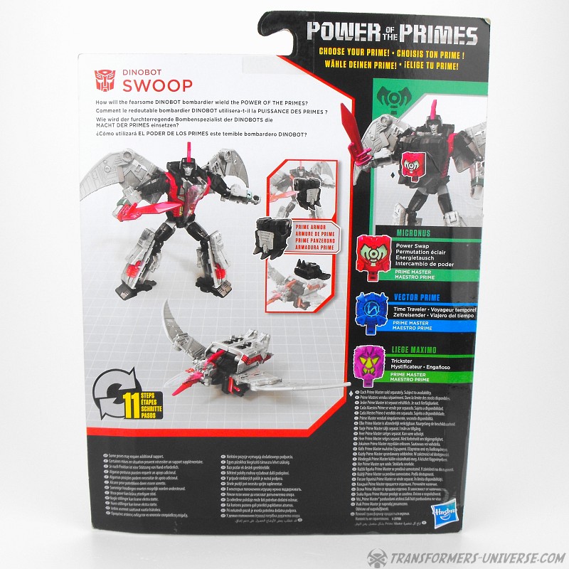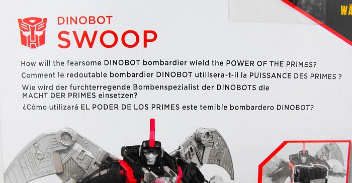As a toy Swoop is nice. For Dinobot fans he is probably a must-have, but for me he is merely a good Power of the Primes figure. He works as both an arm and a leg for a combiner, he has a good robot- and beast-mode and while he lacks a certain something extra, he is an all-around good toy with no flaws worth mentioning. Recommended to combiner and Dinobot fans.