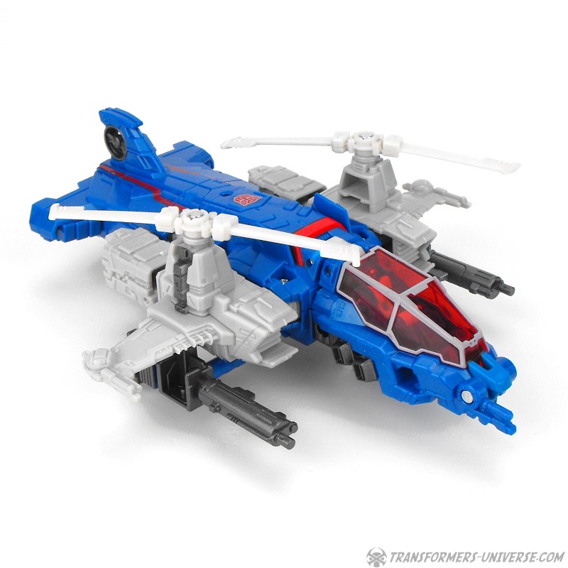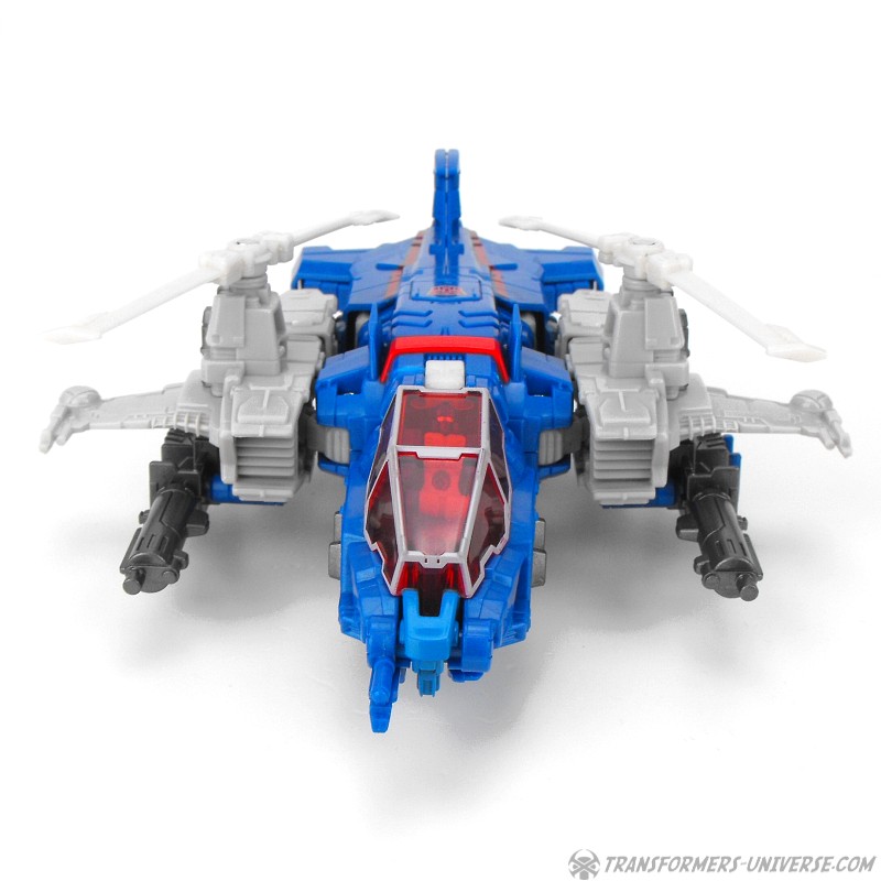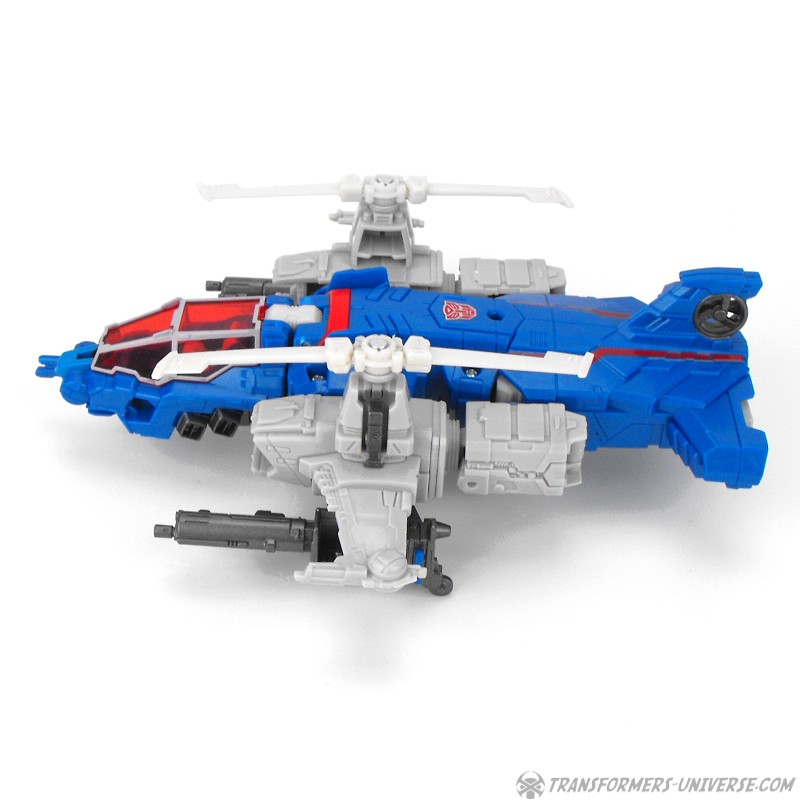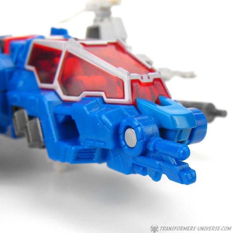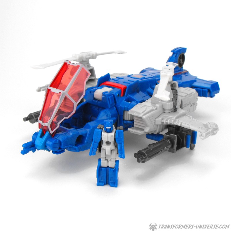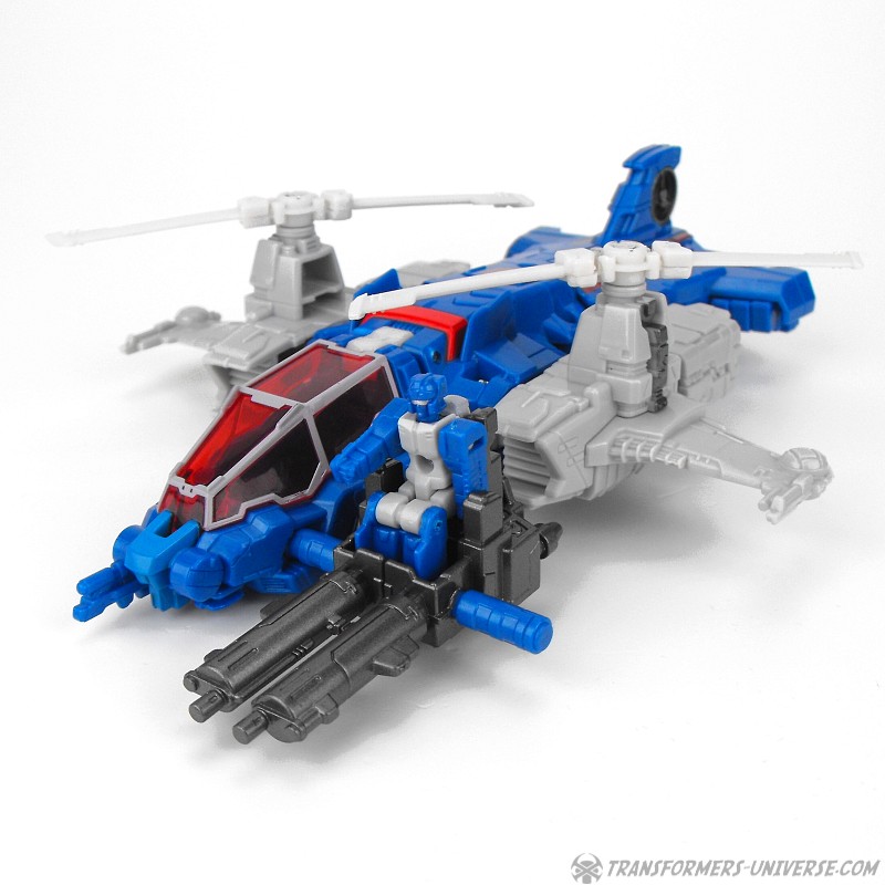 The two guns can also be combined into a single weapon with a seat for Xort and be mounted on the side of the helicopter. Not only does that look somewhat awkward, though, it also means that, you guessed it, the helicopter now has no landing gear. Anyway, the vehicle mode looks pretty good, but the landing gear thing is a bit of a letdown. How hard would it have been to put it on the actual figure instead of the gun? Apart from that, though, no complaints. A nice helicopter mode.