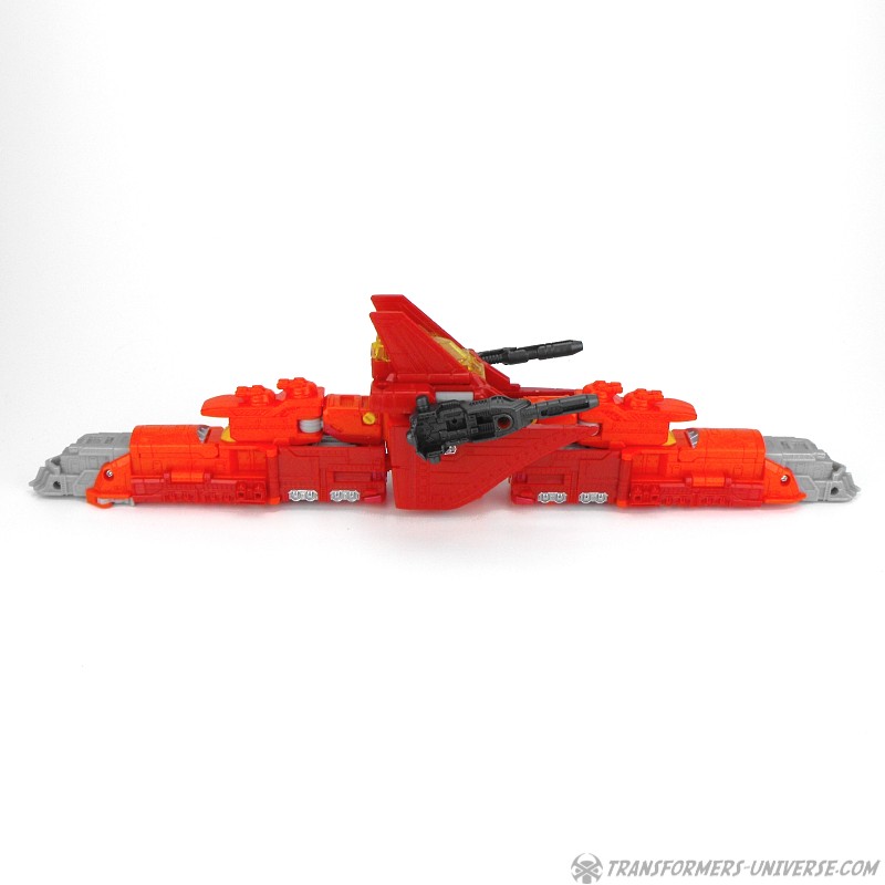 His second alternate mode is a train and much like I didn’t really care for most of Astrotrain’s train modes over the years, I’m not that enamored with that one, either. Sentinel basically does the splits, the length of the train being mostly his legs. The result is a very futuristic looking train (and VERY orange, too). The cockpit remains in place, the rifles can still be attached, but overall this mode doesn’t really do it for me.