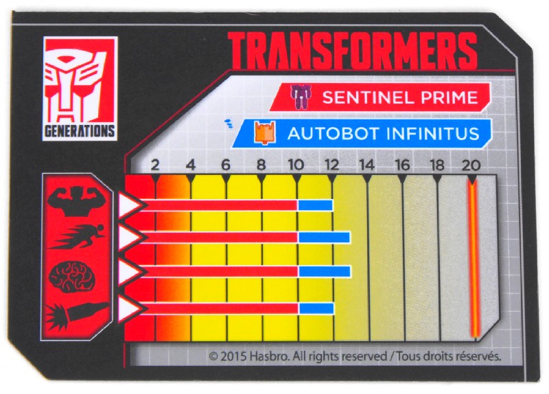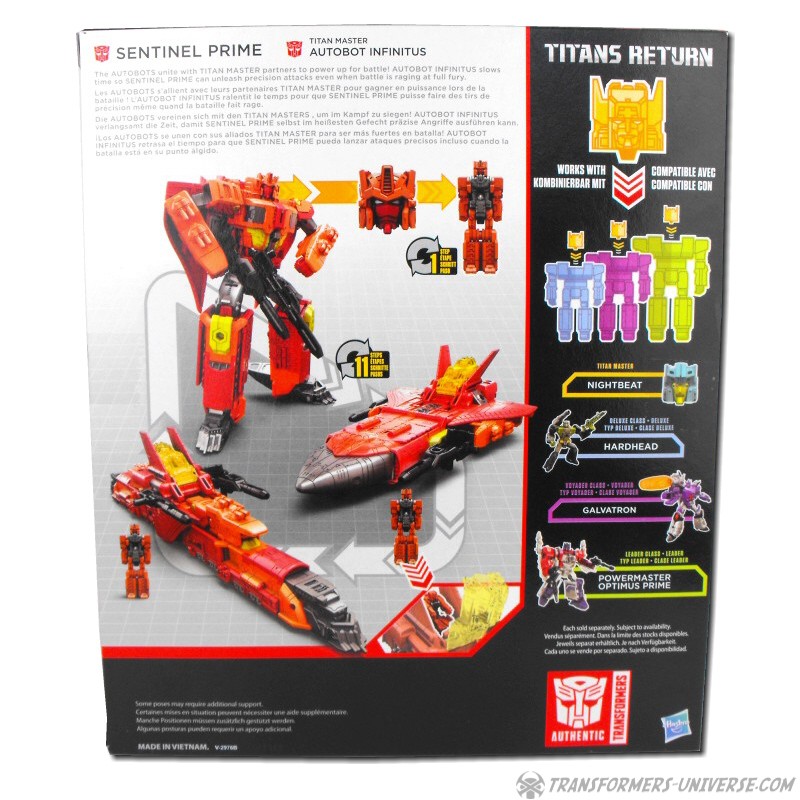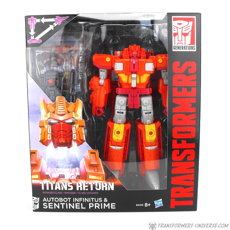 Sentinel Prime has returned. One of the most powerful warriors who has ever lived, the former Autobot leader looks to impose his will on a universe that sits on the edge of full-blown war. The Titan Master Autobot Infinitus gives Sentinel Prime temporary invincibility by shielding him with a forcefield.