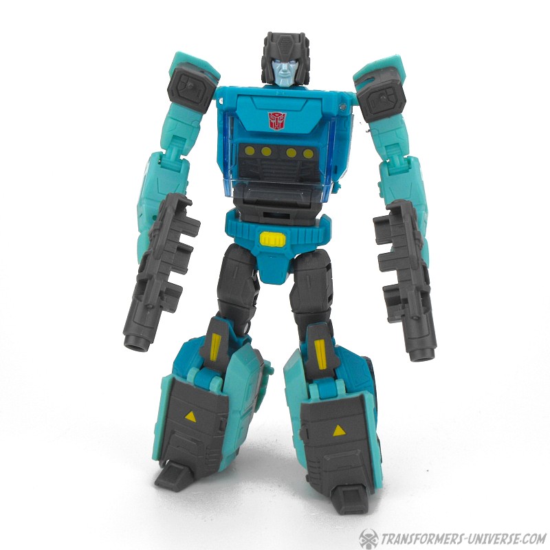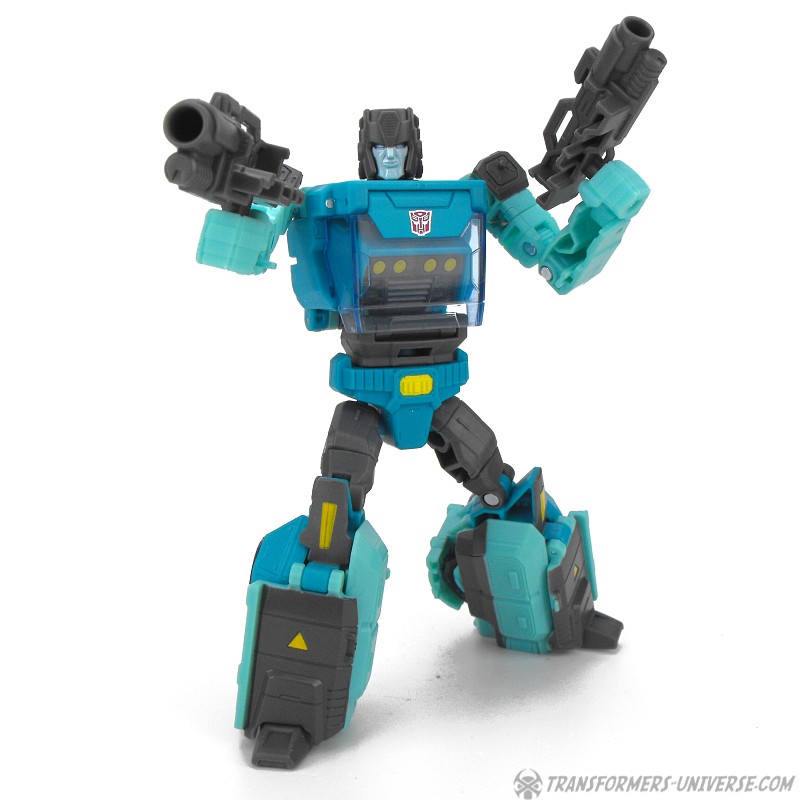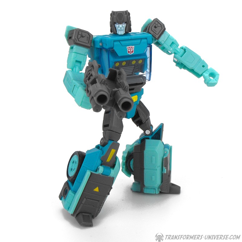 Classic look aside Kup is yet another very well-designed Titans Return Deluxe figure in robot mode. Articulation is excellent, detailing is very nice, and overall everything just fits together very nicely. Kup comes with two chunky grey guns that combine into an even chunkier double-barreled grey gun which he can also store on his back when he needs his hands free.
