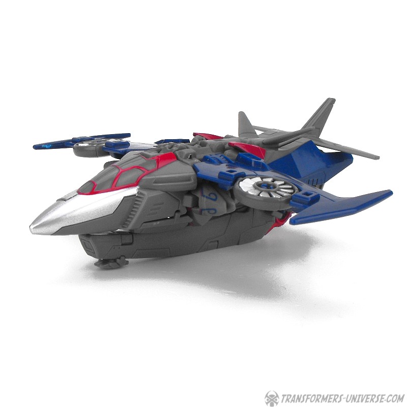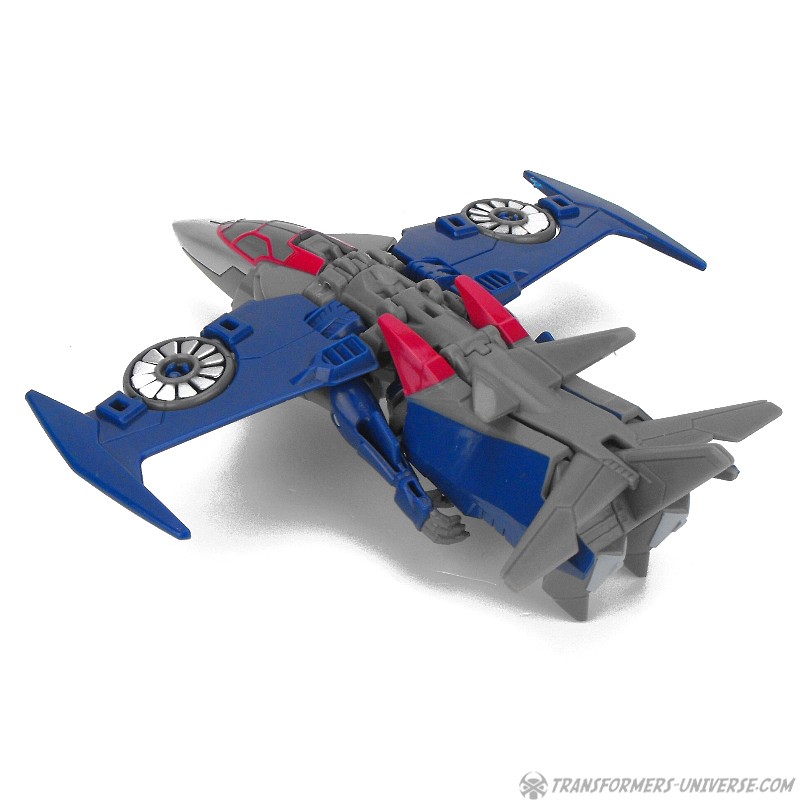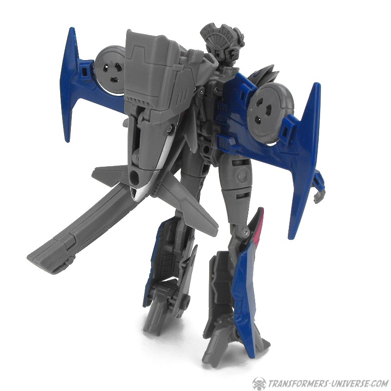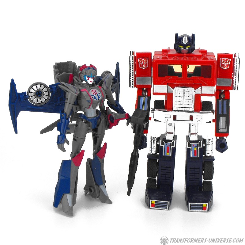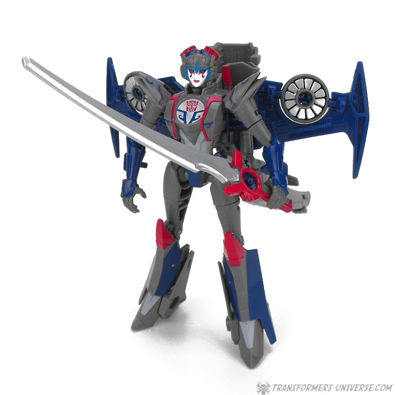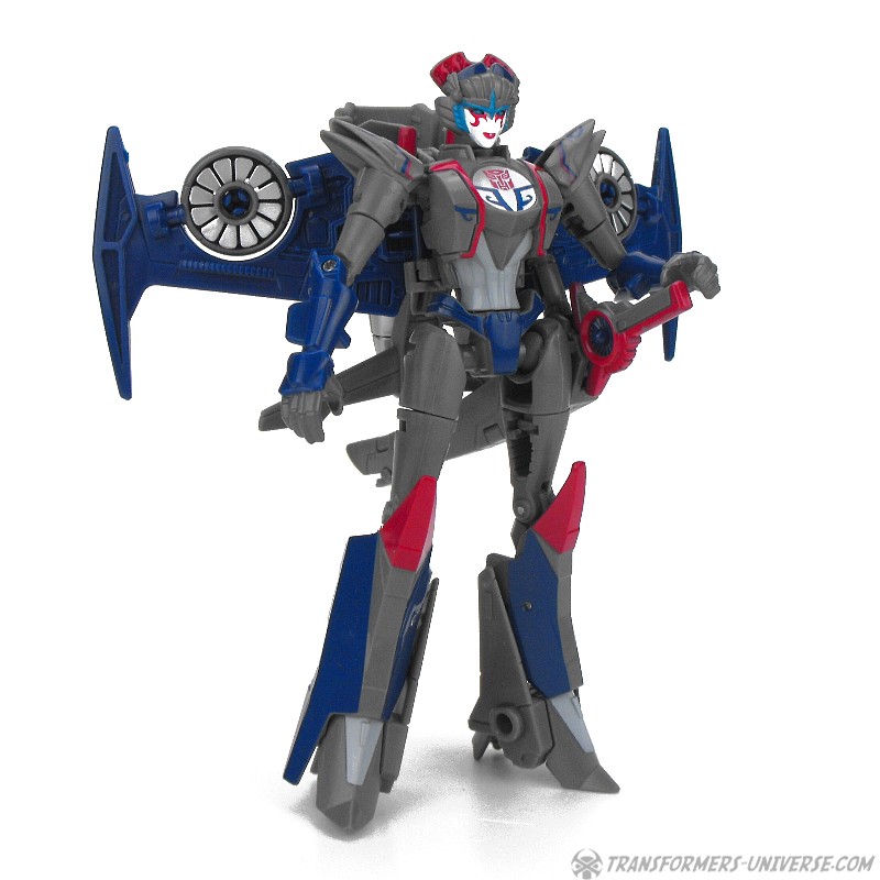 Remarks: After having written my longest-ever review, this one here might well be one of my shortest. Windblade here is a simple repaint of Robots in Disguise Windblade. No structural changes, just new colors, swapping out the red and black for blue and grey. And that’s pretty much it. Still a very nice figure, but the paint job seems pretty random to me. Windblade was part of a three-pack called Titan Force along with repaints of Brainstorm and Sentinel Prime. Why these three in particular? No idea, sorry. Anyway, the Titan Force three-pack is worth getting if you don’t have a Sentinel Prime or Brainstorm yet, but if you’re looking for a Windblade, I advise getting either the RID one or the new Titans Return version. This one here falls under “just another repaint”, I fear.
