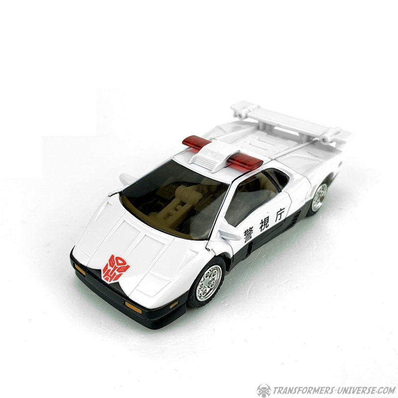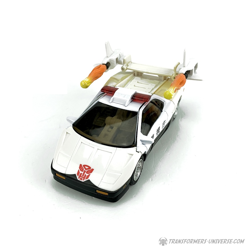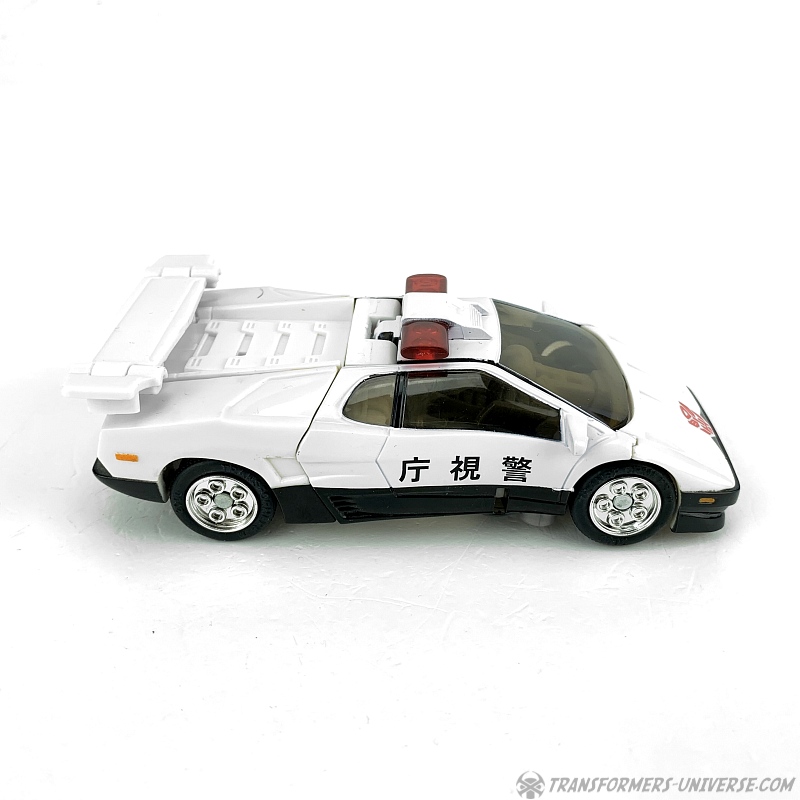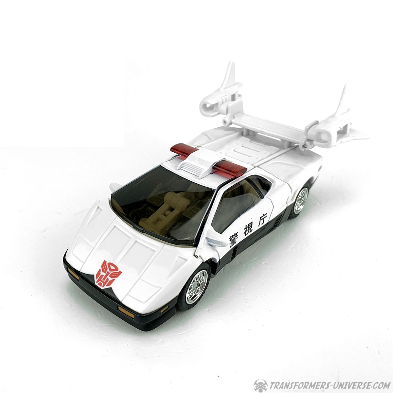 Remarks: In Transformers, whenever you have an Autobot that transforms into a police car, odds are it will be called Prowl. So, too, did the Japanese Car Robot Mach Alert receive the classic G1 name when it came to marketing him in Europe and America. In the cartoon series Prowl did little except constantly remind people what laws or regulations they have broken recently, but as one of the three Autobot Brothers he did see a lot of screentime.