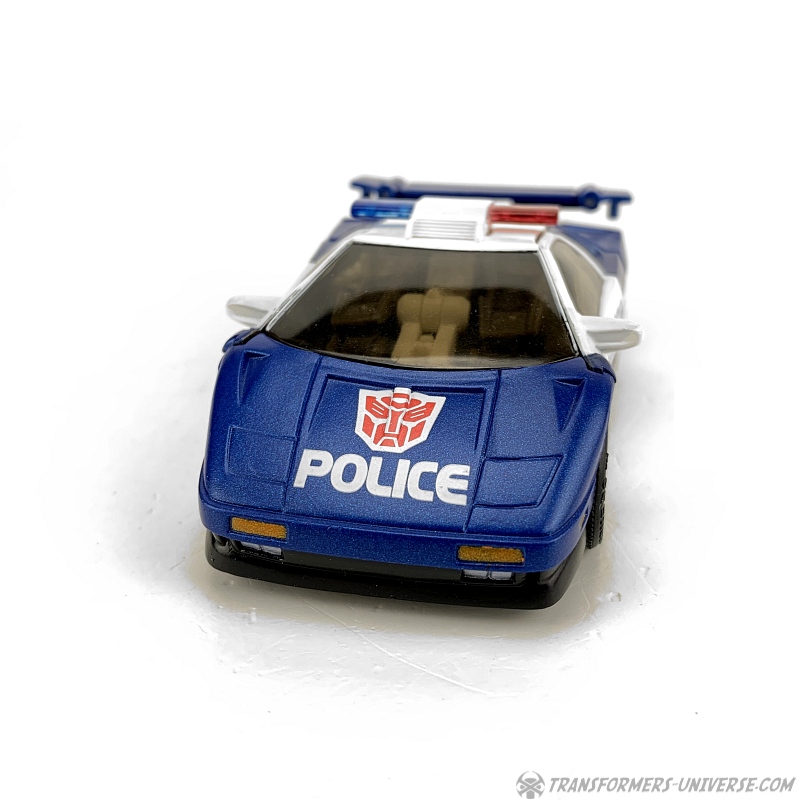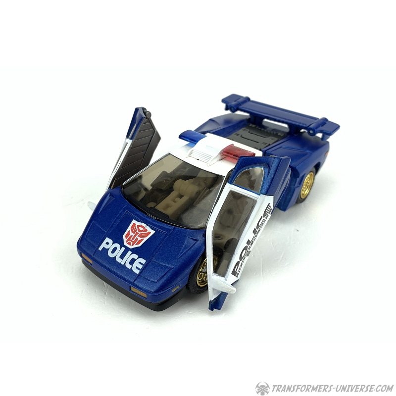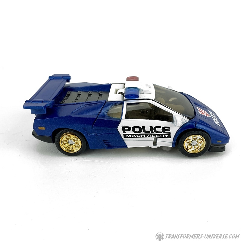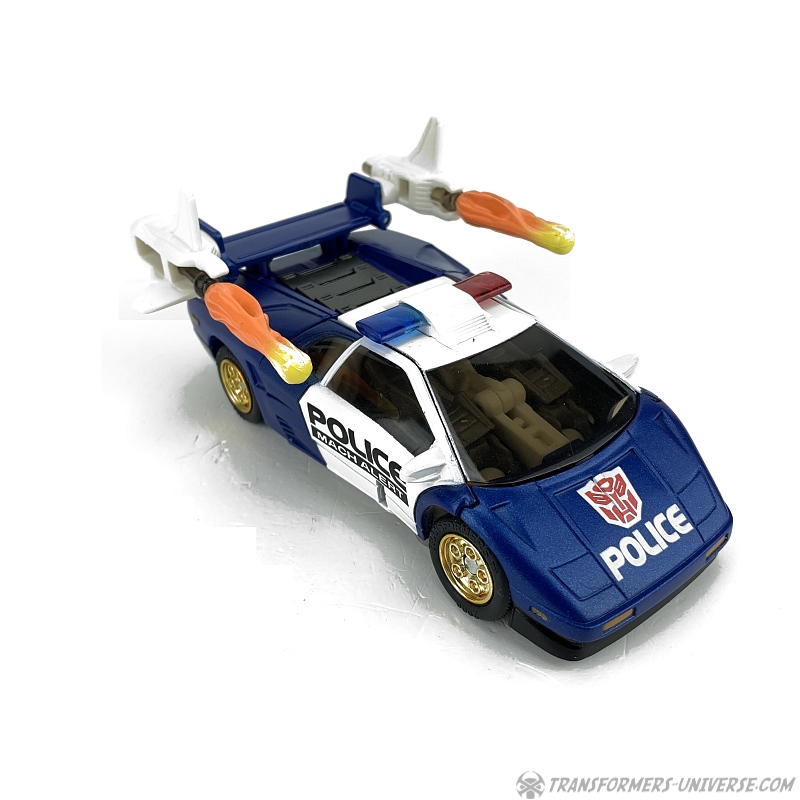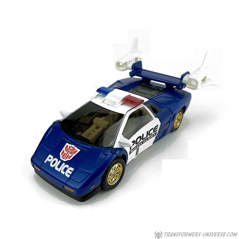 Prowl added a new Spark engine to his configuration to improve his mobility and searching ability. With high-capacity radars on both his shoulders, he can instantly find enemies hiding in a 300 km radius. And once he finds them, they're history. He has electronic systems for jamming radios or hacking into systems.